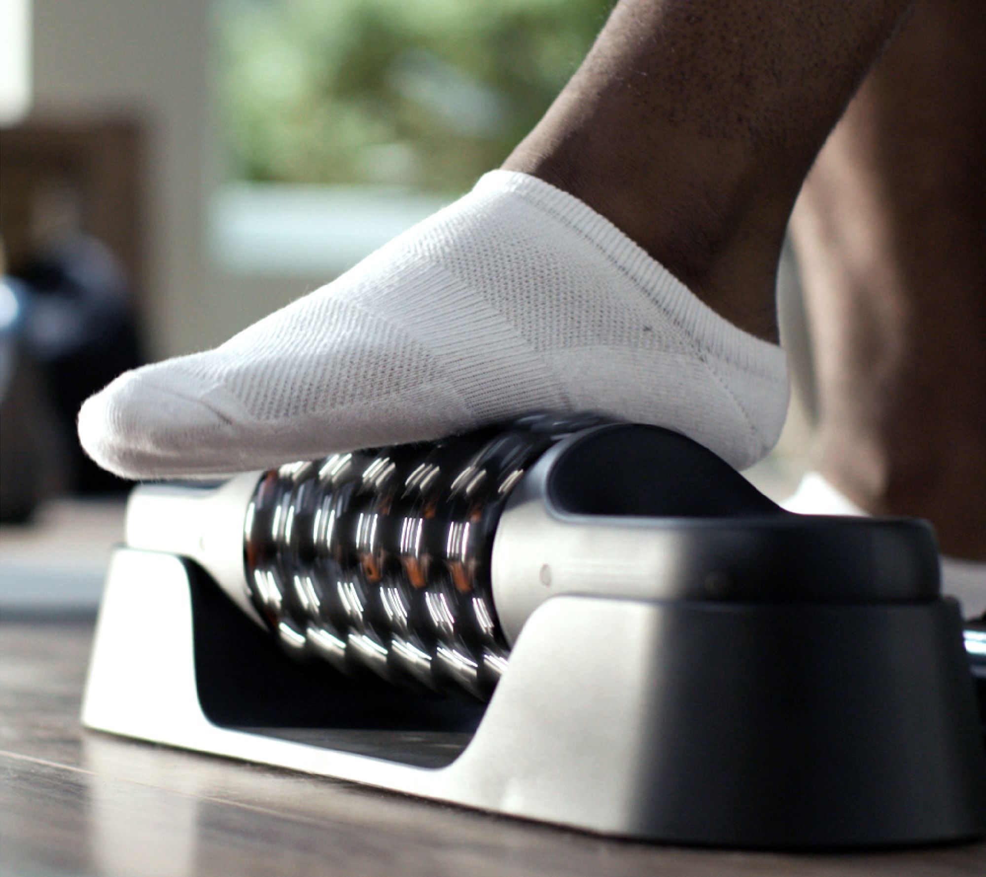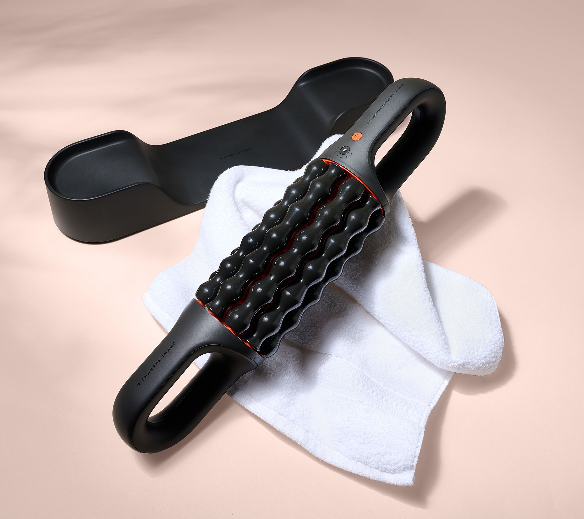 Long day? Intense workout? Help target sore muscles with the Sharper Image Rechargeable Powerboost Roll Massager, featuring six massage speeds and 55 roller nodes. With touch sensors and a versatile base for hands-free use, you can effortlessly work on those tough, tense spots. Relax and recharge, whether on the couch or at your desk. From Sharper Image.