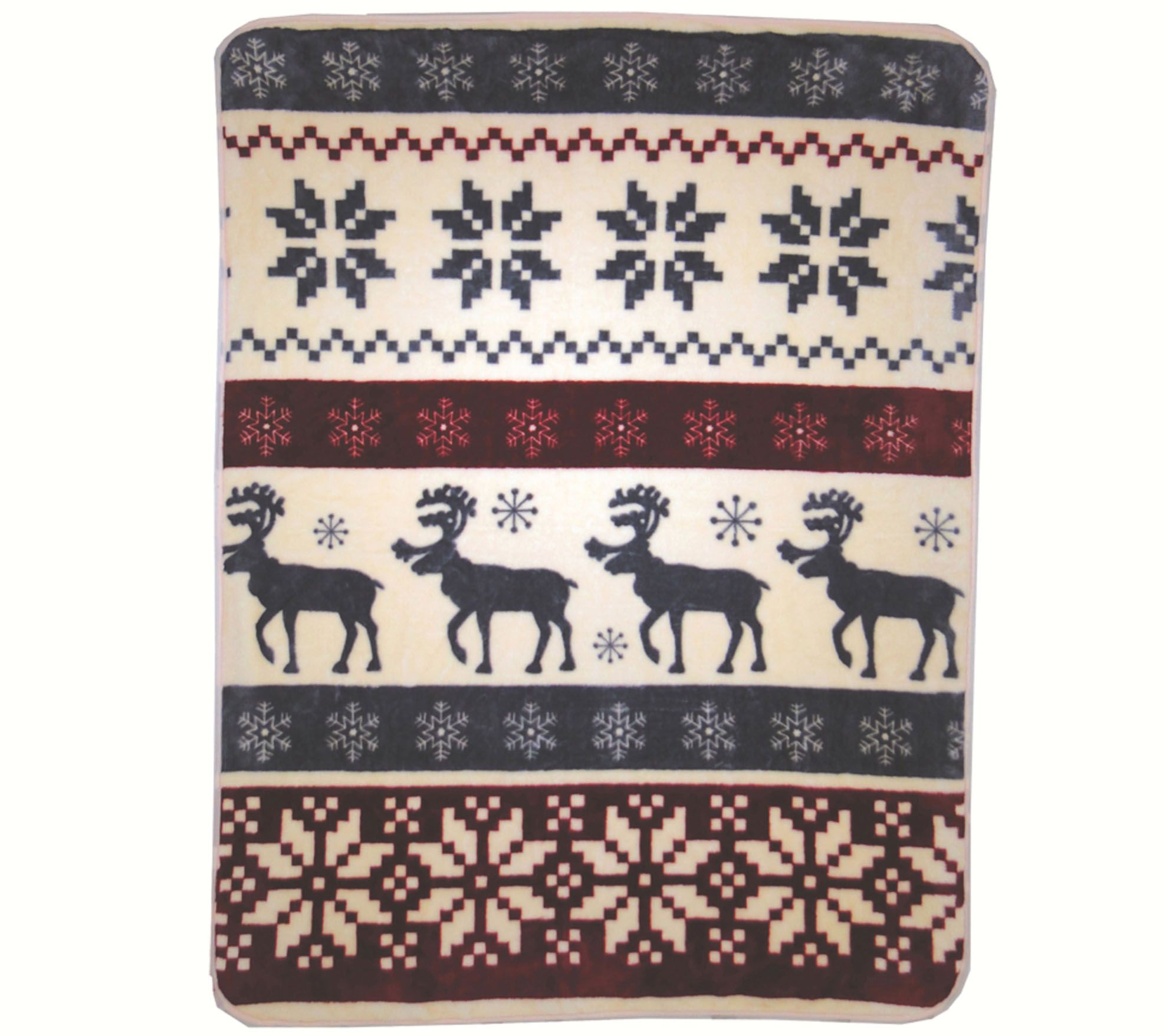 A perfect complement to your holiday home, this oversized luxury throw features a rustic reindeer stripe design. From Shavel.