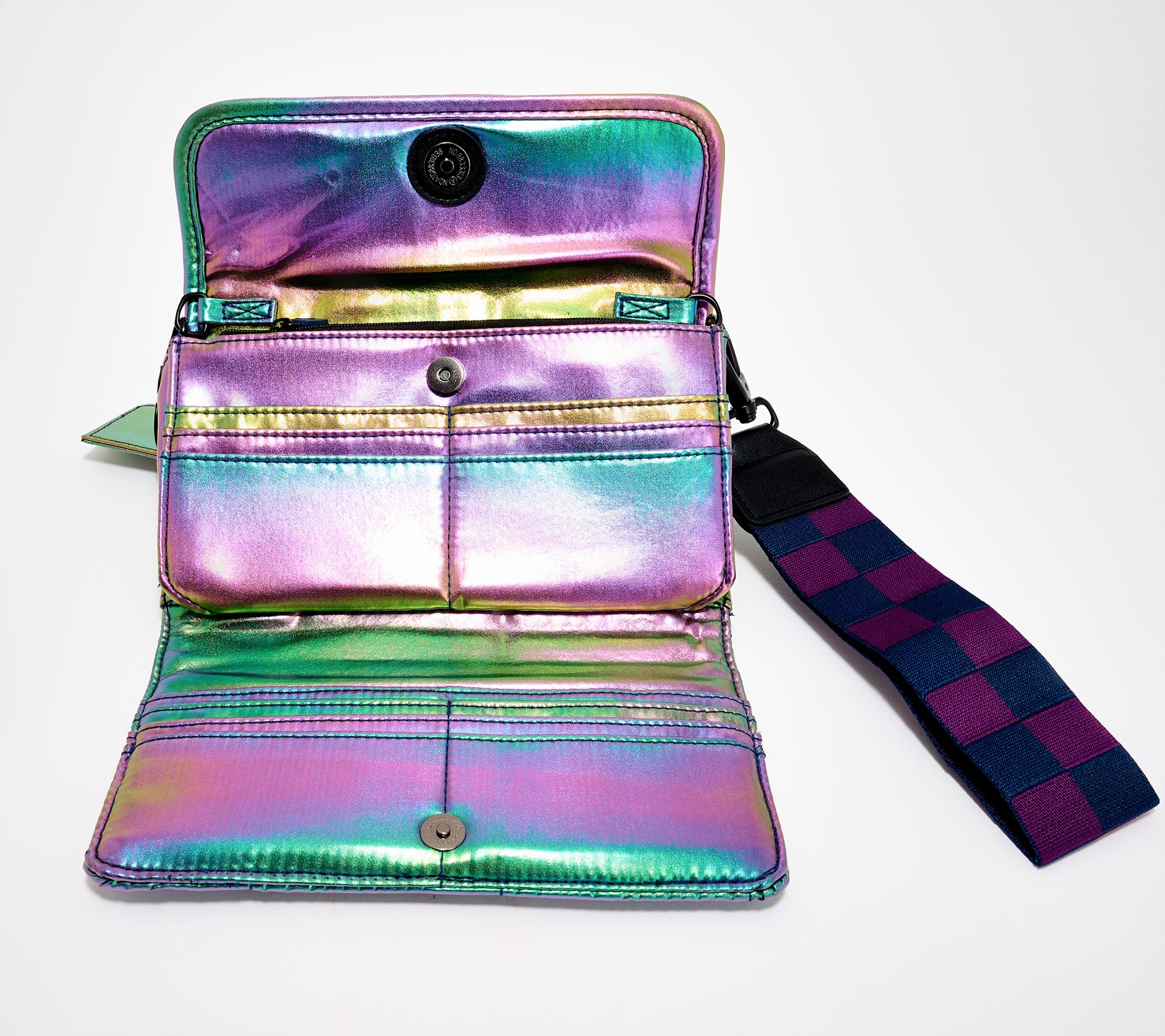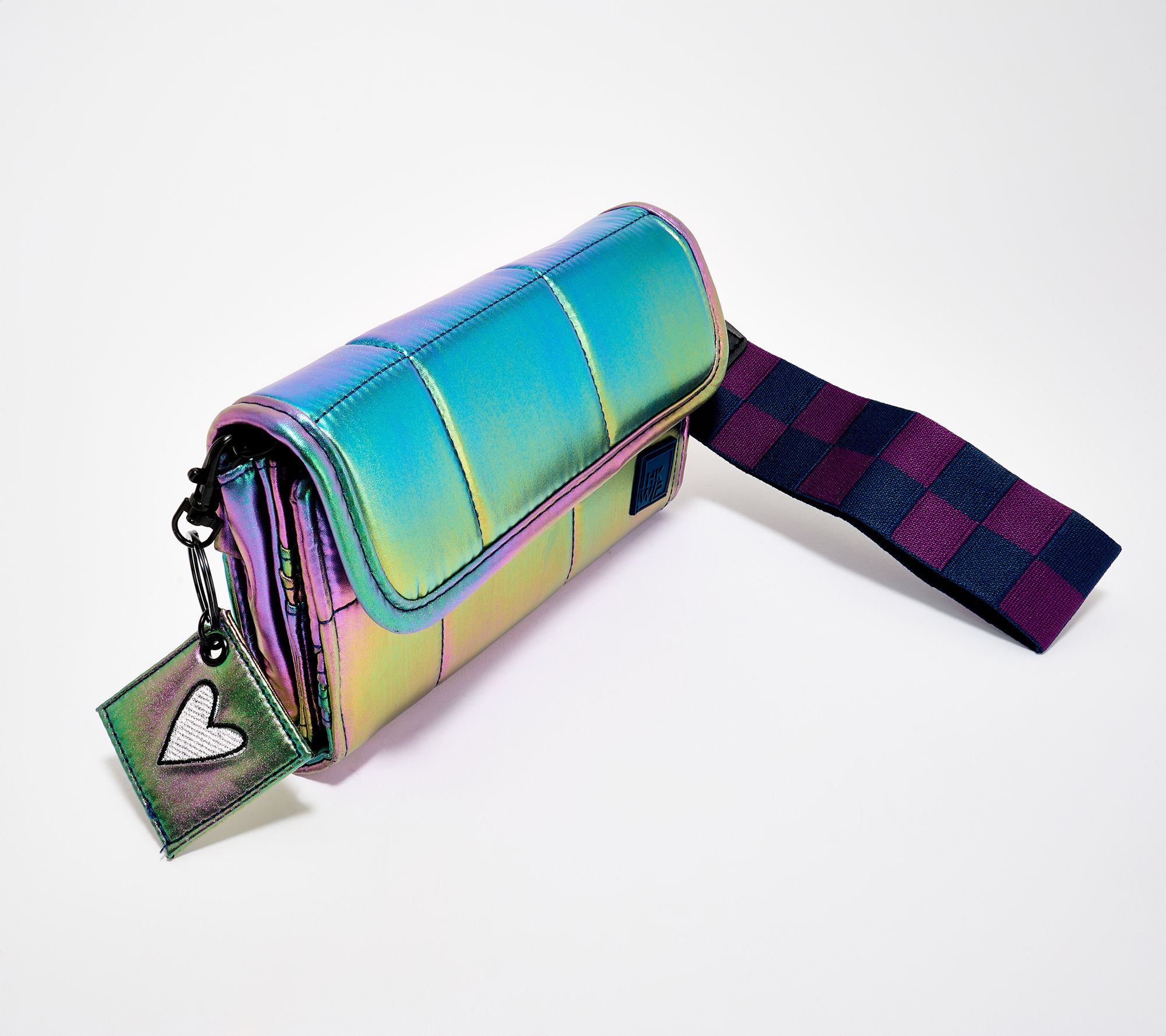 Outings are easier with this check-pattern wallet, offering a bright accent and clever organization for cards, cash, and even your phone. Use the detachable wristlet strap for hands-free convenience, or attach the embroidered heart keychain for a fun, personalized touch. There's a zip pocket for your must-haves. From IHKWIP.