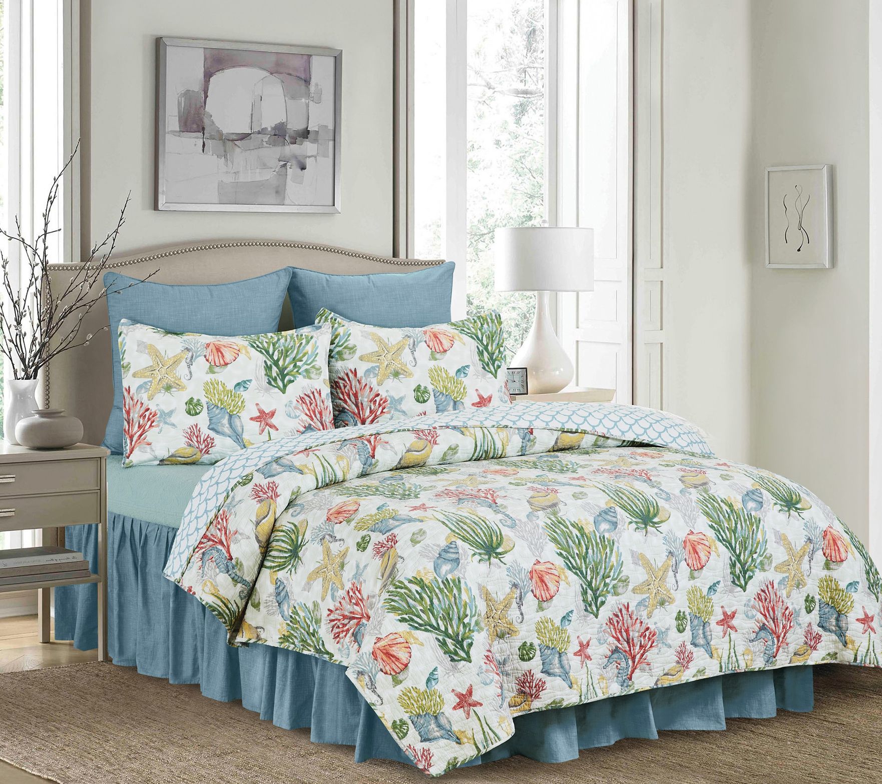 Every day will feel like a vacation when you top your bed with the undersea-inspired beauty of this Shellwood Sound cotton sham. From the Valerie Parr Hill Collection.