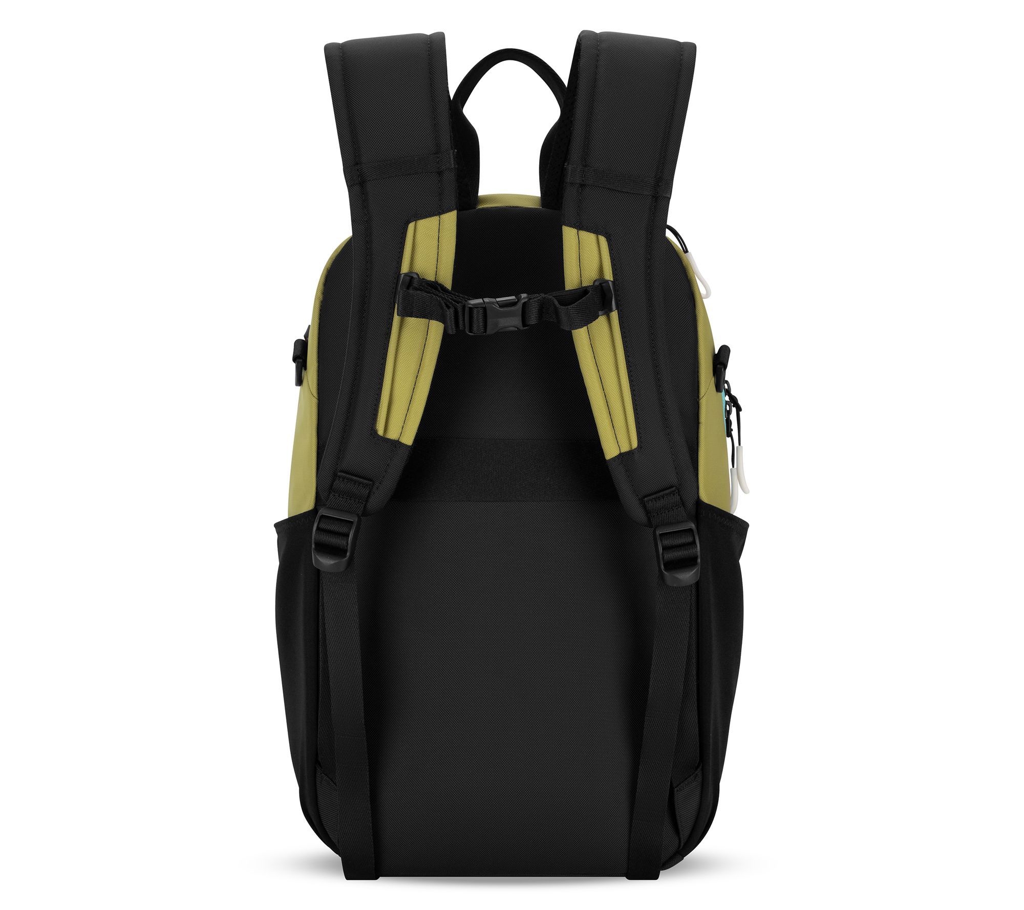 Double handles, zip top closure, locking zipper, adjustable backpack straps up to 23", adjustable sternum strap, front exterior upper zippered pocket, hidden zippered front pocket, exterior lower zippered pocket with zipper lock, dual water bottle pockets, 9" luggage pass-through