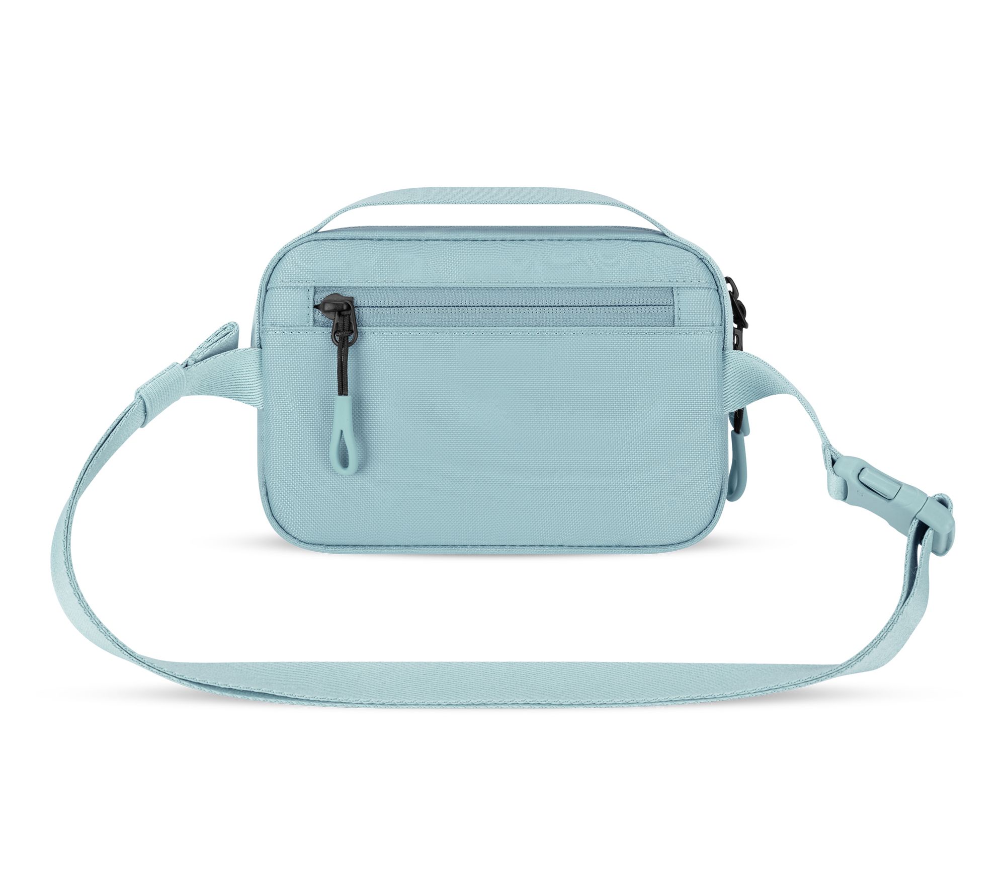 • Converts from crossbody to belt bag, zip-top closure, front zipper pocket with zipper lock and key leash, fixed grip handle, back zippered pocket, adjustable waist strap up to 40"