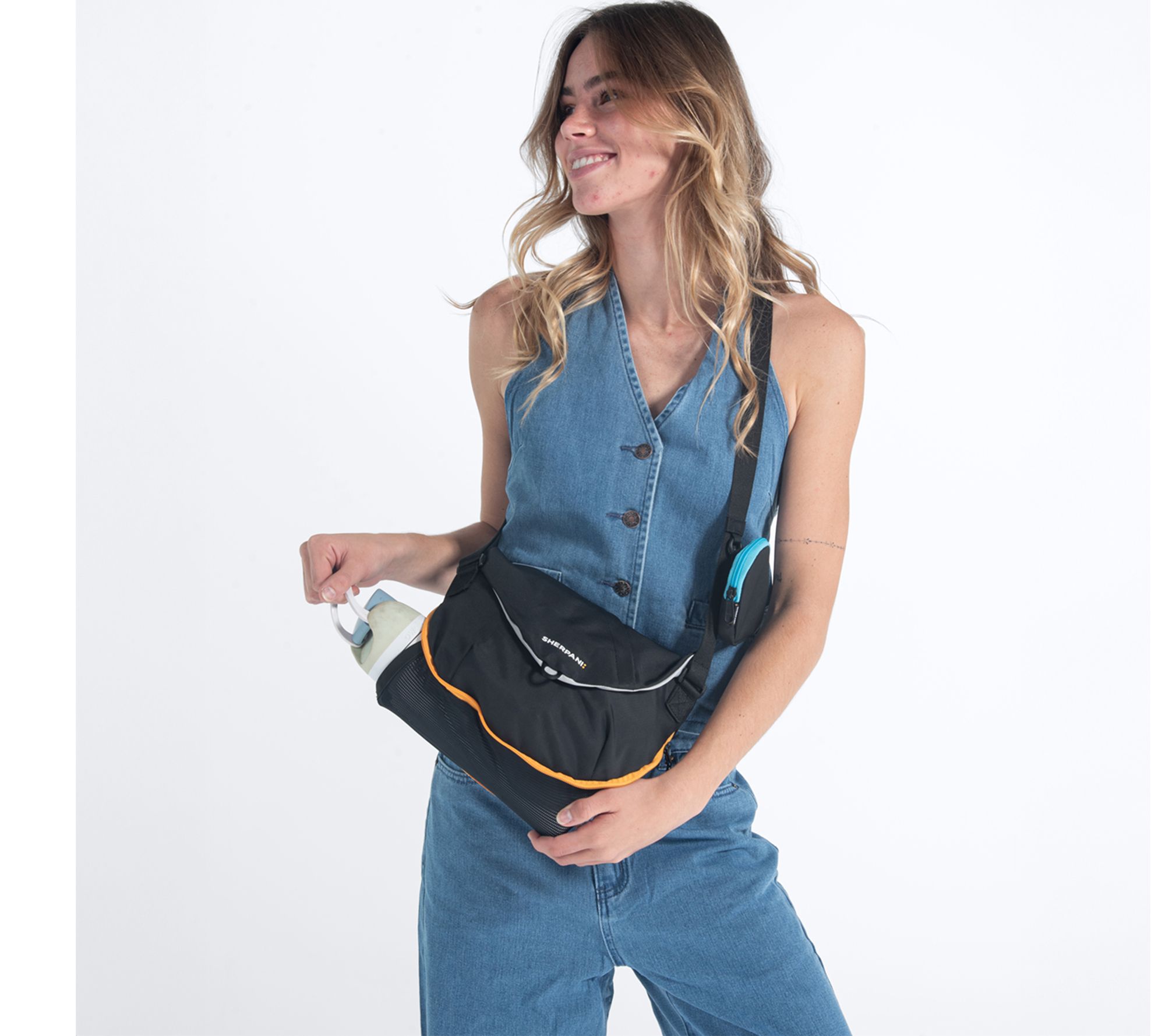 Measures approximately 11.25" x 8" x 2.5" (expanded 5") with a 12" strap drop; weights 8.3 oz