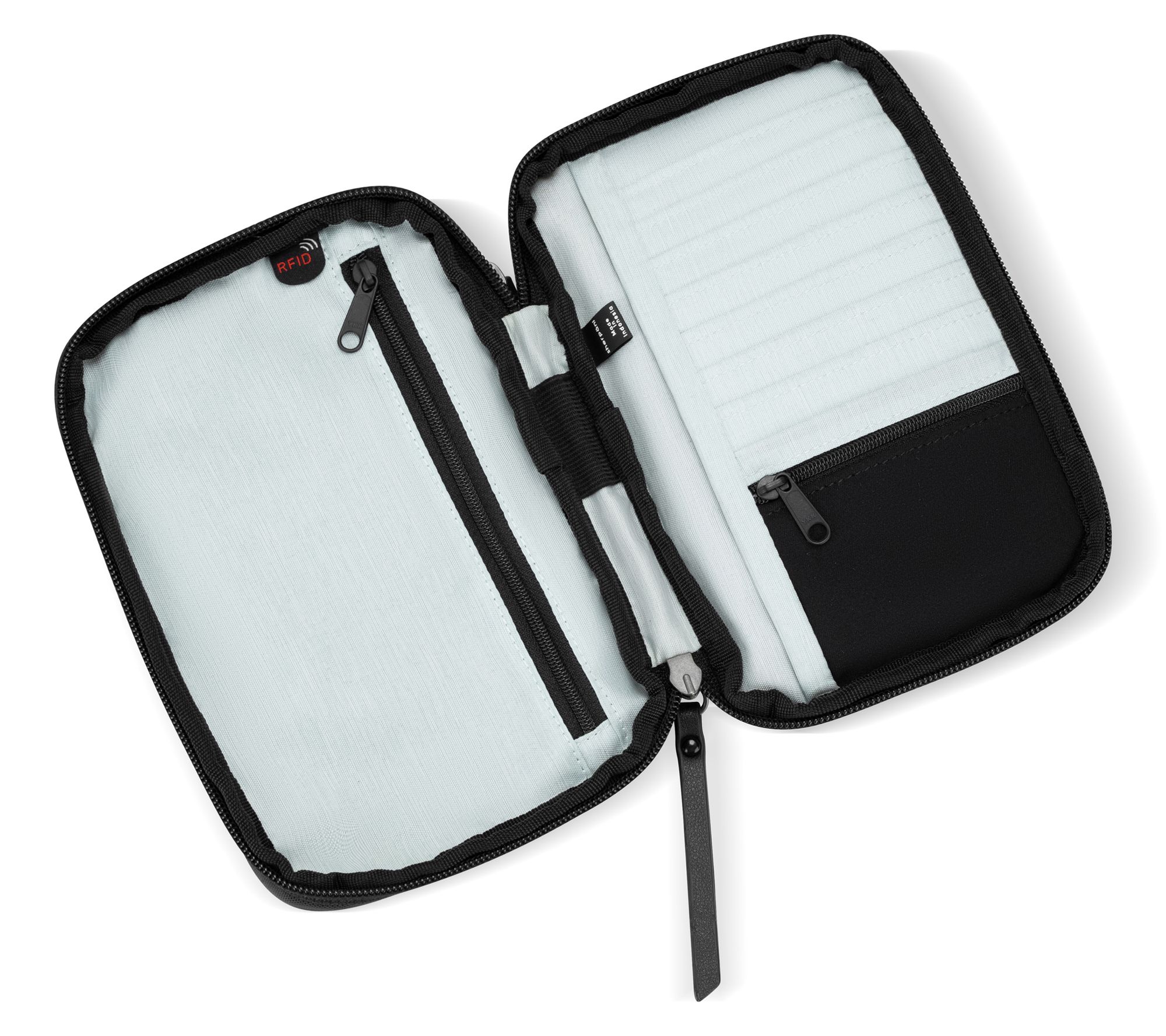 • Lined interior, interior zipper pocket, eight card slots, interior coin zippered pocket, pen holder