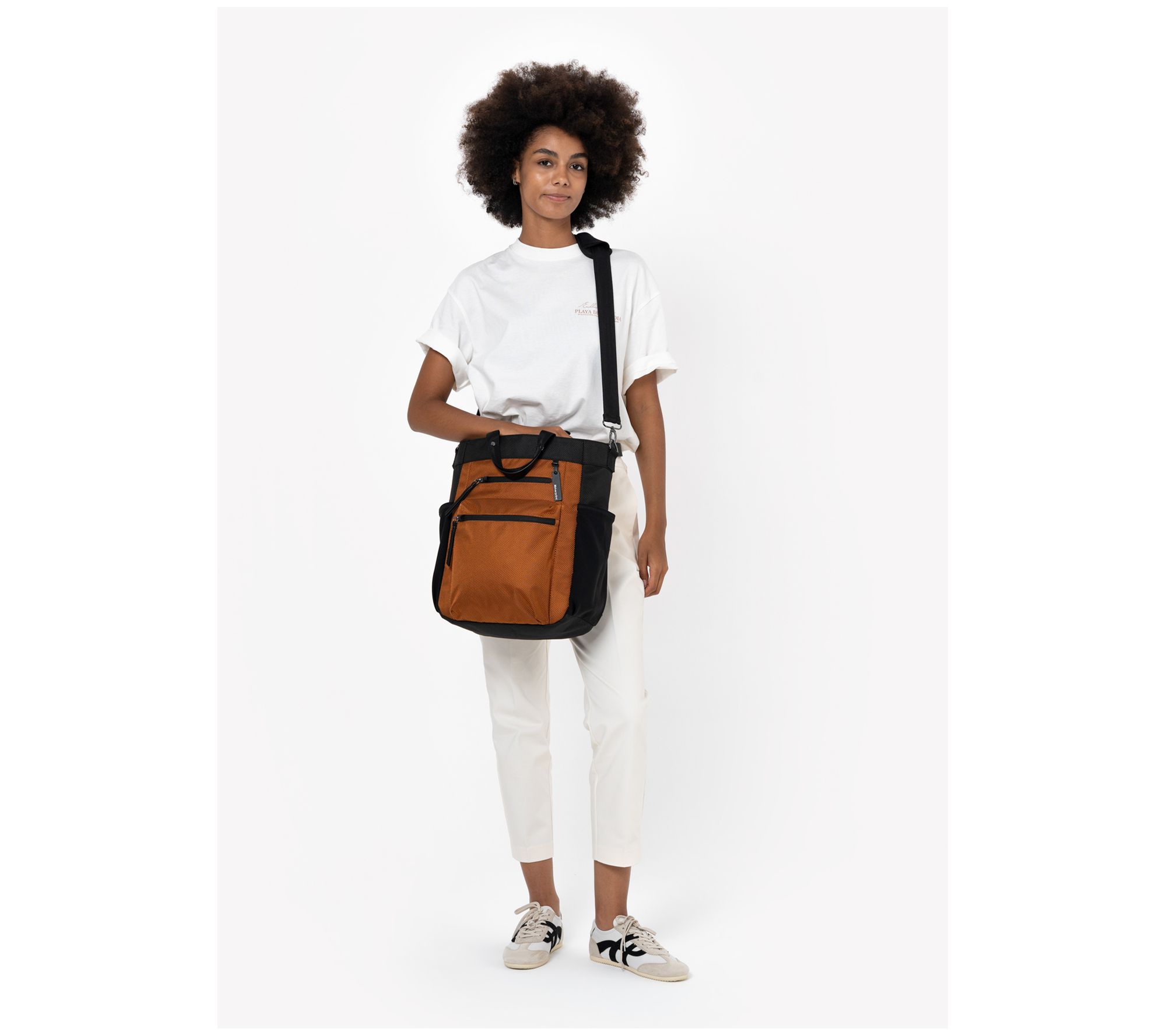 • Measures 11" x 15" x 4.5" with a 3" handle drop and a 16" strap drop; adjustable strap length 32"-55.5"; weighs 34 oz