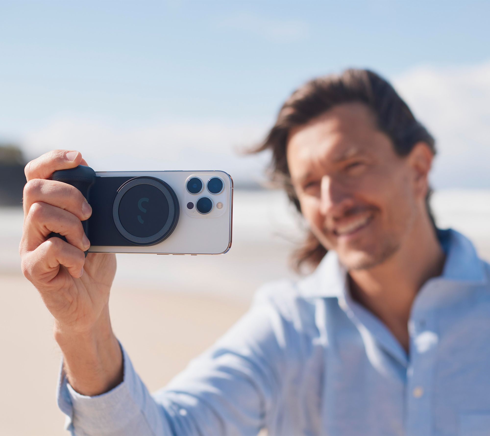 The magnetic mount offers a comfortable camera-like grip, wireless shutter button, and built-in wireless charging so you can top up your battery while you're on the go. Now smile for the camera and say cheese! From Shiftcam.