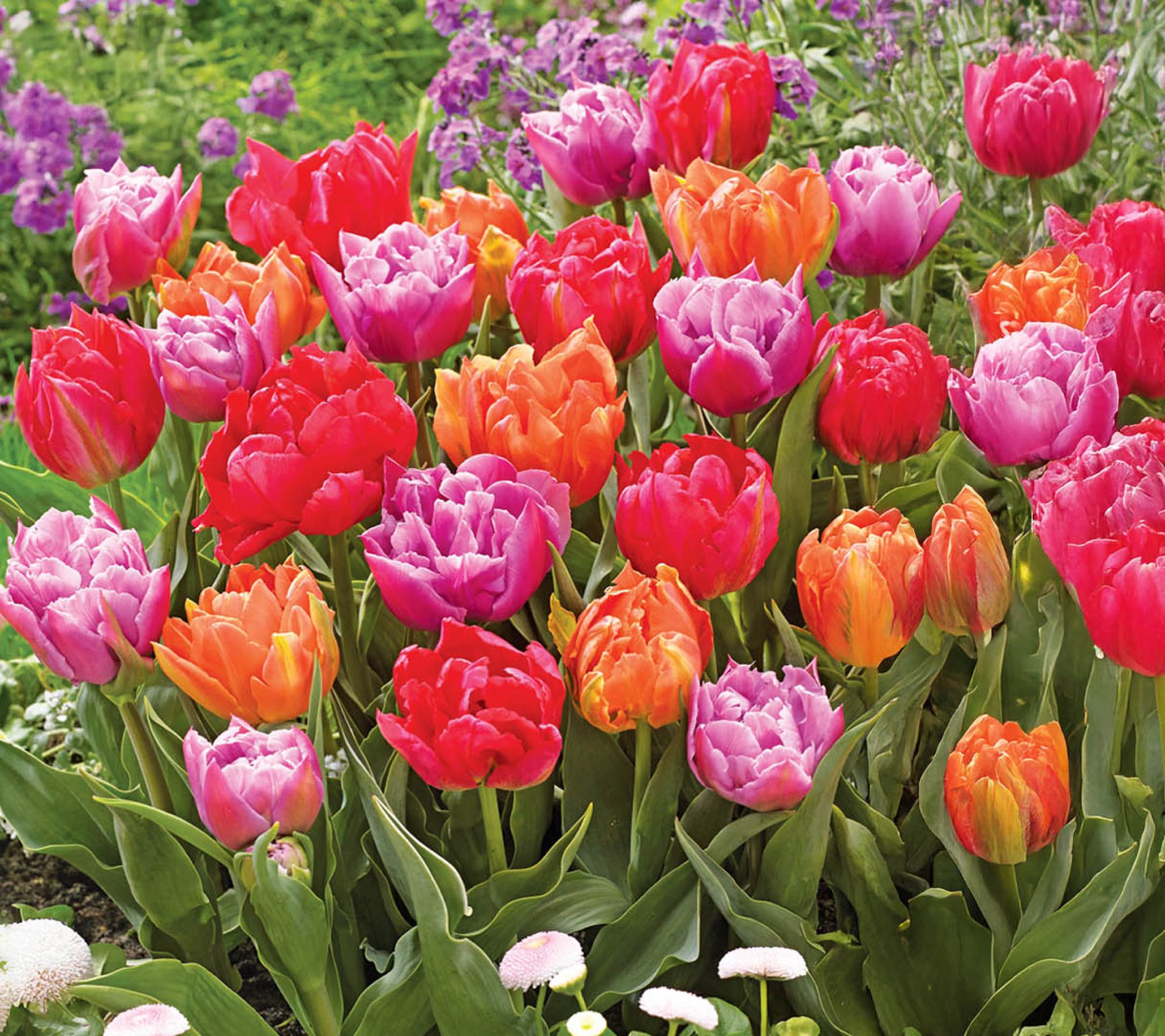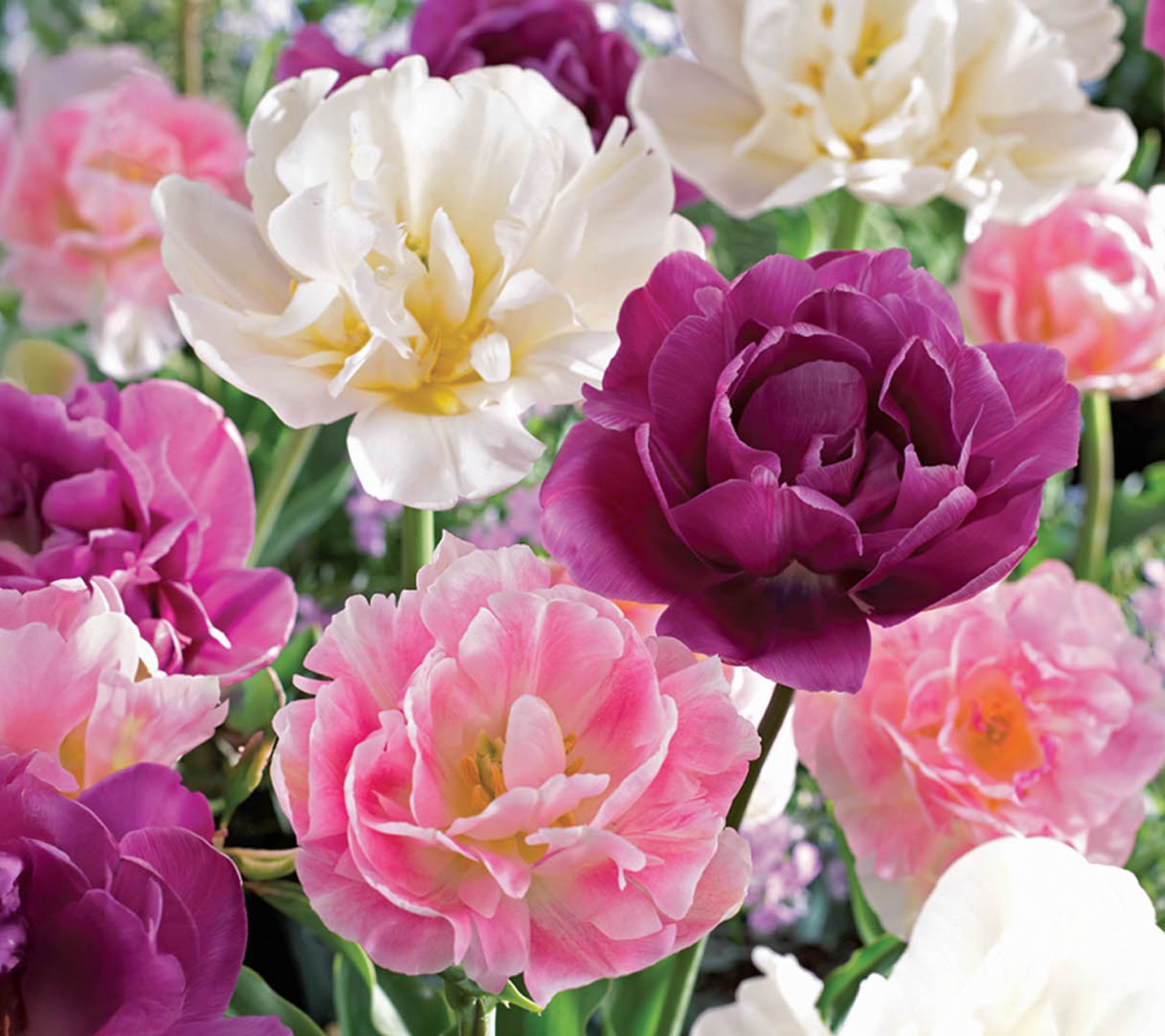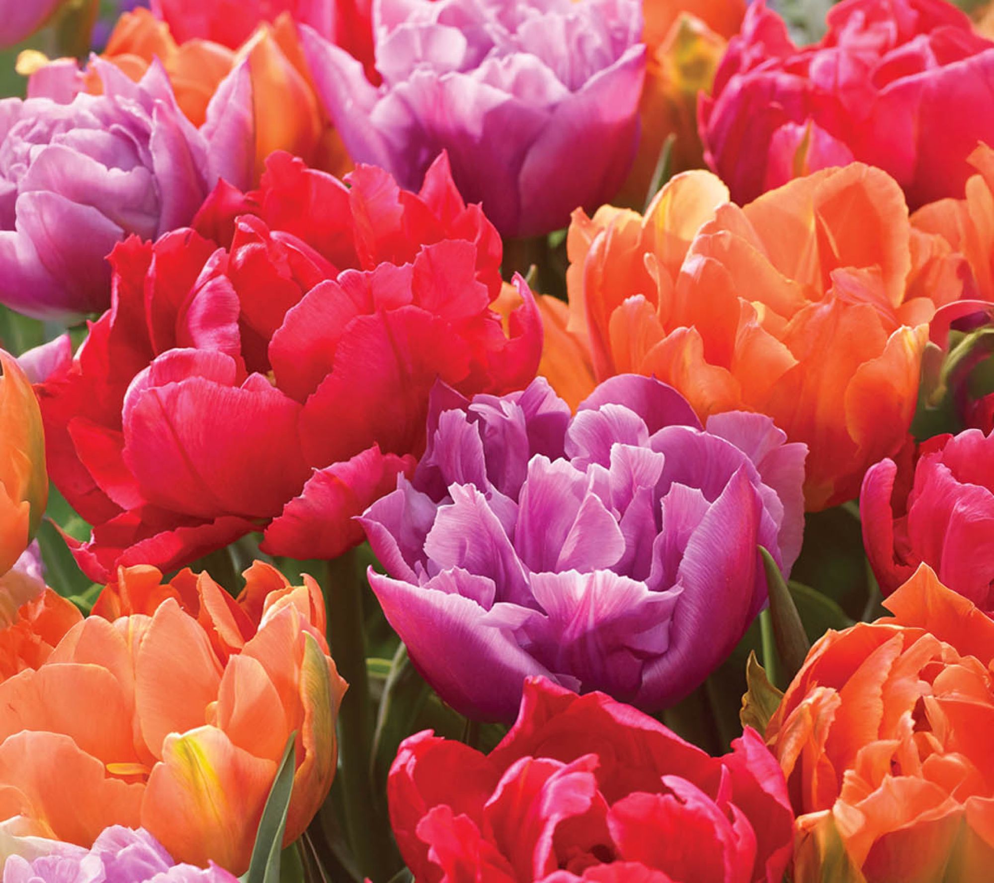 Transform your garden each spring with a dazzling mix of peony tulip bulbs in soft pinks, vivid oranges, purples, reds, and classic whites. Perfect for planting in borders, beds, containers, or pots in the fall, these hardy perennials return year after year with lush, layered blooms that add elegance and color to any outdoor space. From de Jager.