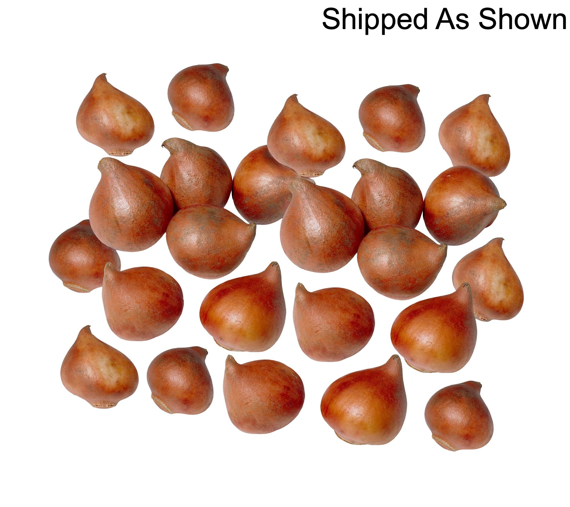 • Shipped as: 24 peony tulip bulbs: a mix of Angelique, Blue Diamond, Mount Tacoma, Orange Princess, Wedding Gift, and Abba