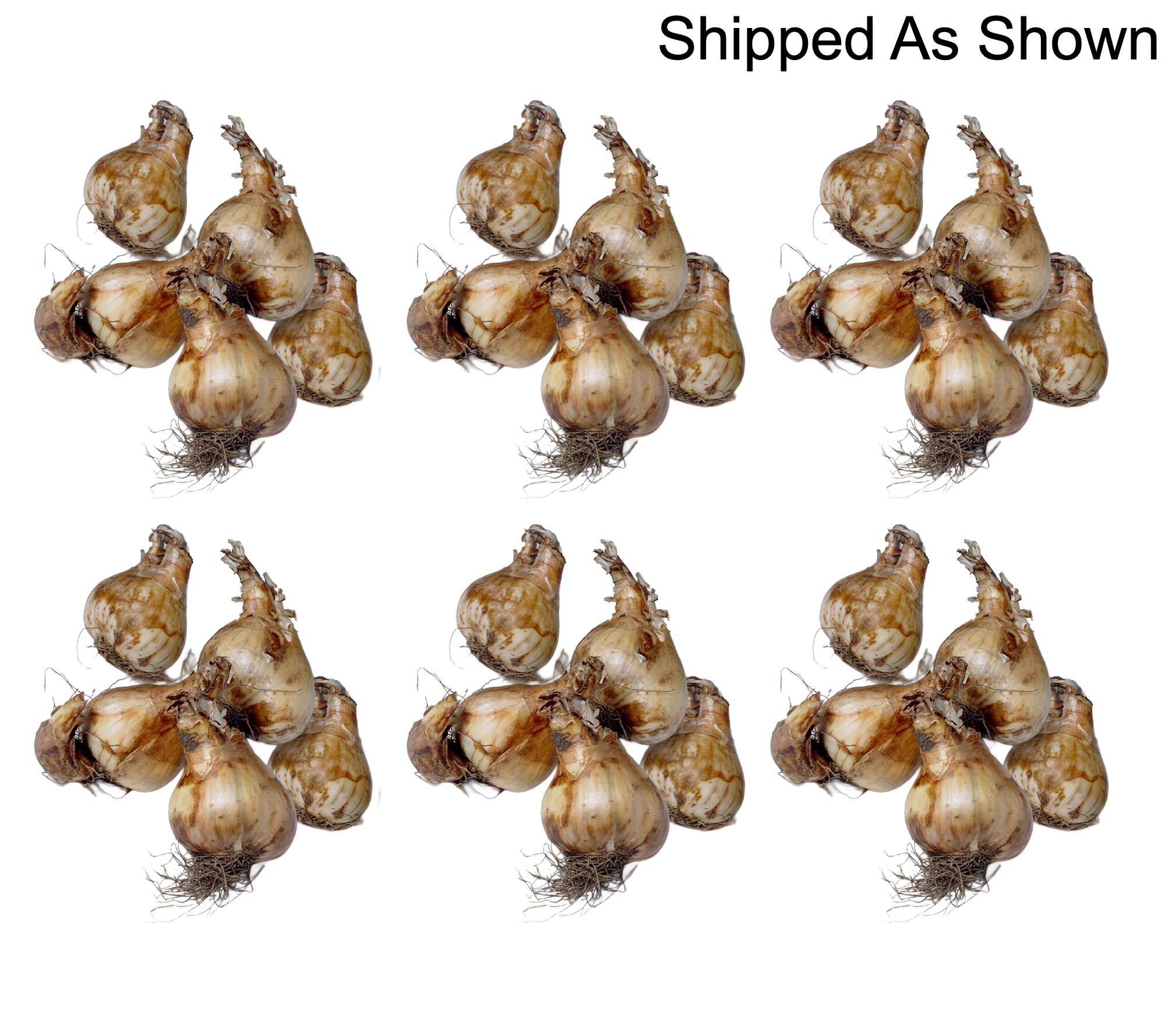 Shipped as: 30 daffodil bulbs: five Avalanche, five Cheerfulness, five Yellow Cheerfulness, five Geranium, five Sir Winston Churchill, and five Falconet
