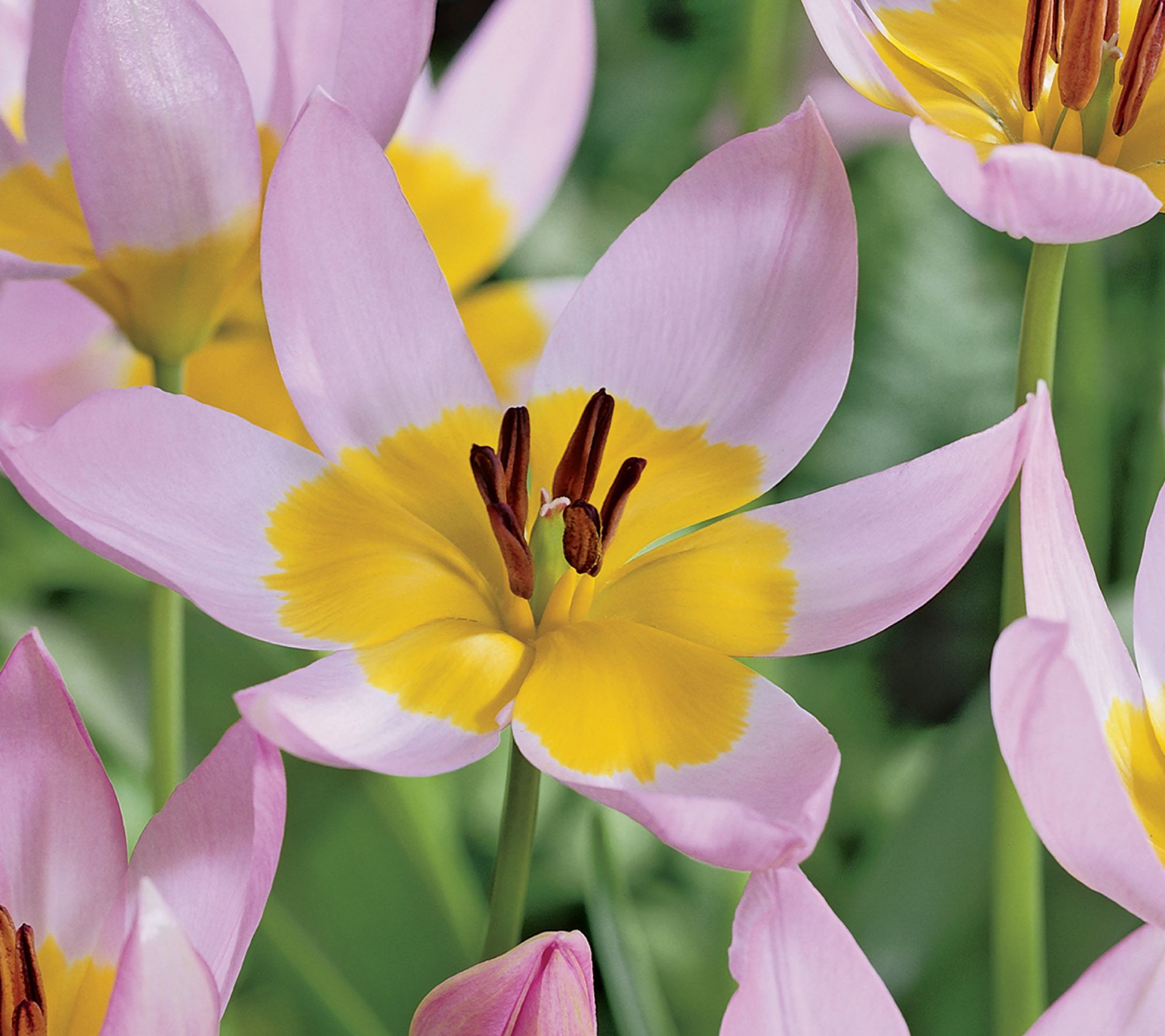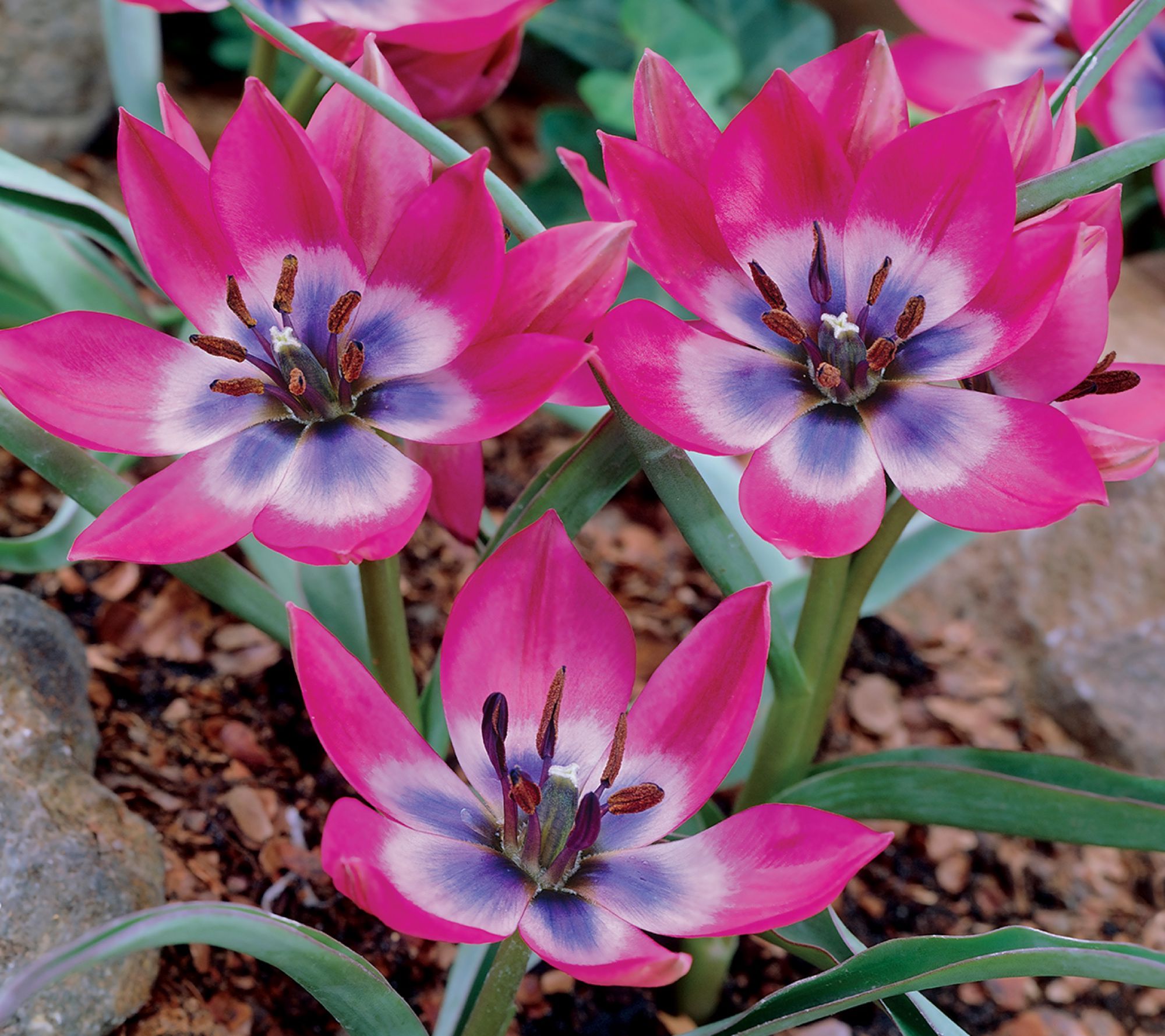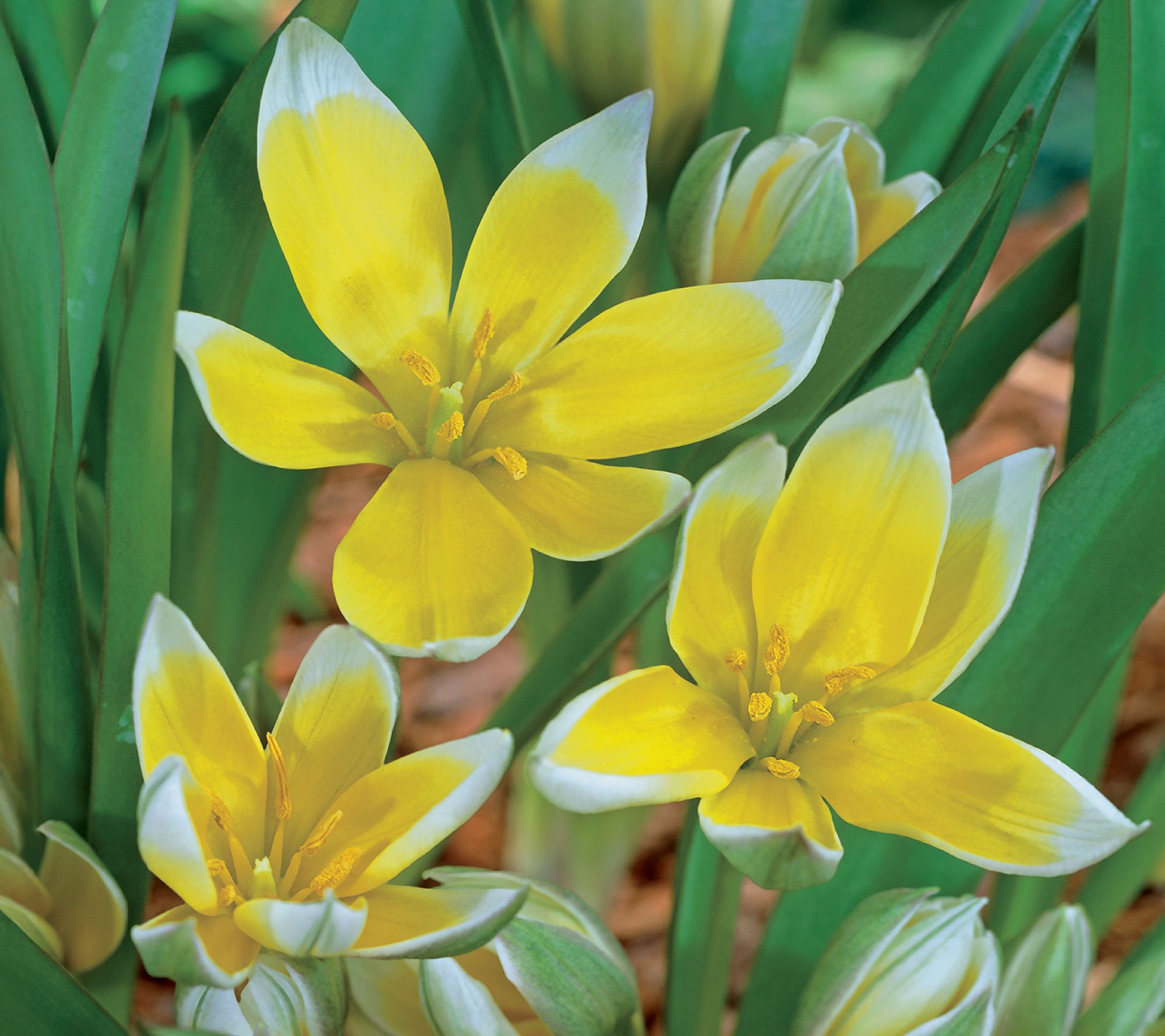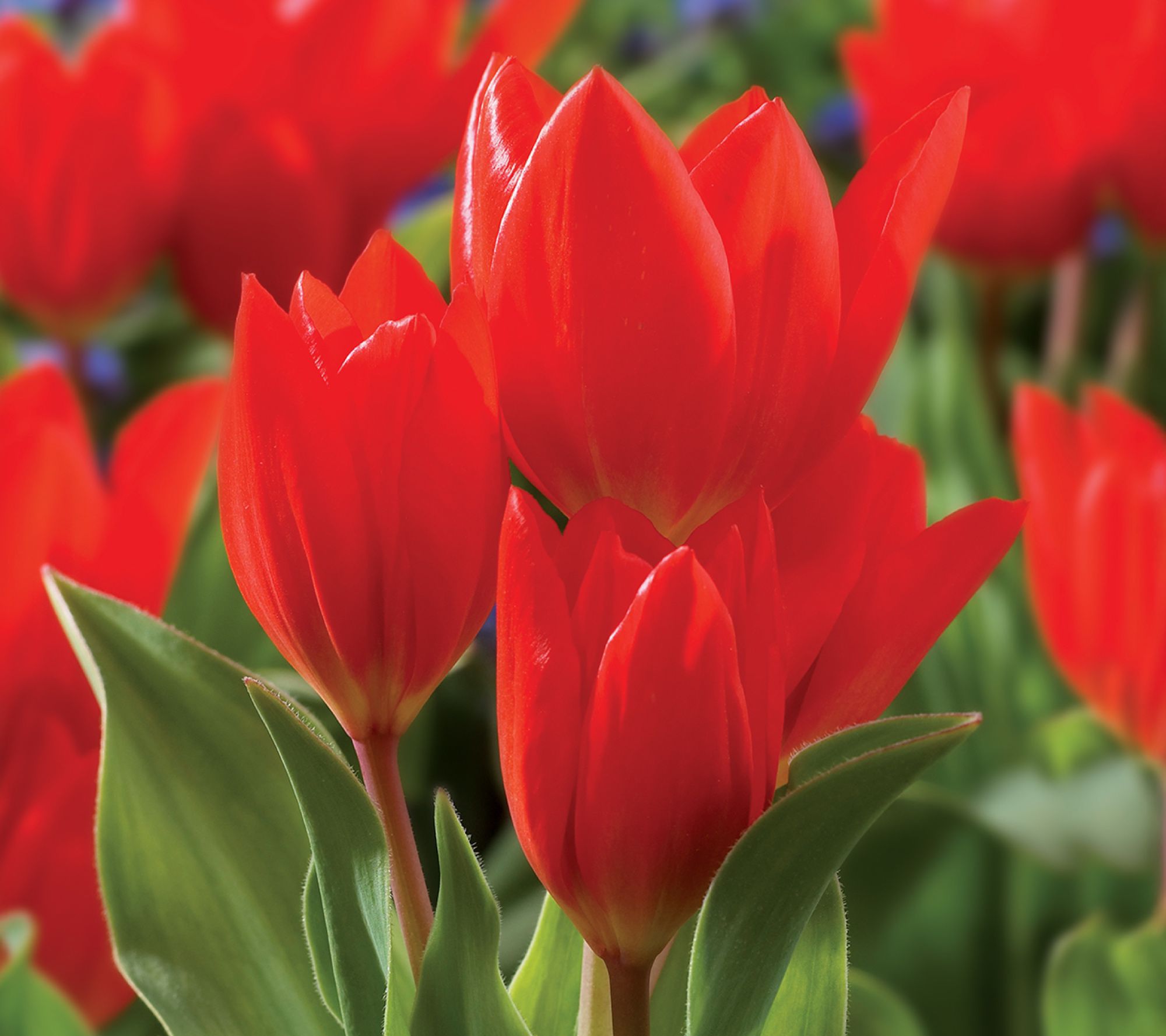 Shipped as: 36 mini tulip bulbs: nine Praestans Fusilier, nine Little Beauty, nine Saxatilis, and nine Tarda