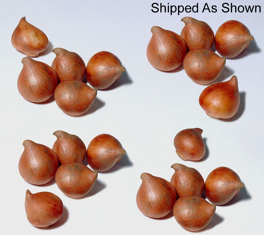 • Shipped as: 20 bulbs: five each of non-scented Angelique with double two-tone pink and white flowers, non-scented Carnaval di Nice with double two-tone red and white flowers, scented Mount Tacoma with double white flowers, and Uncle Tom with double deep red flowers
