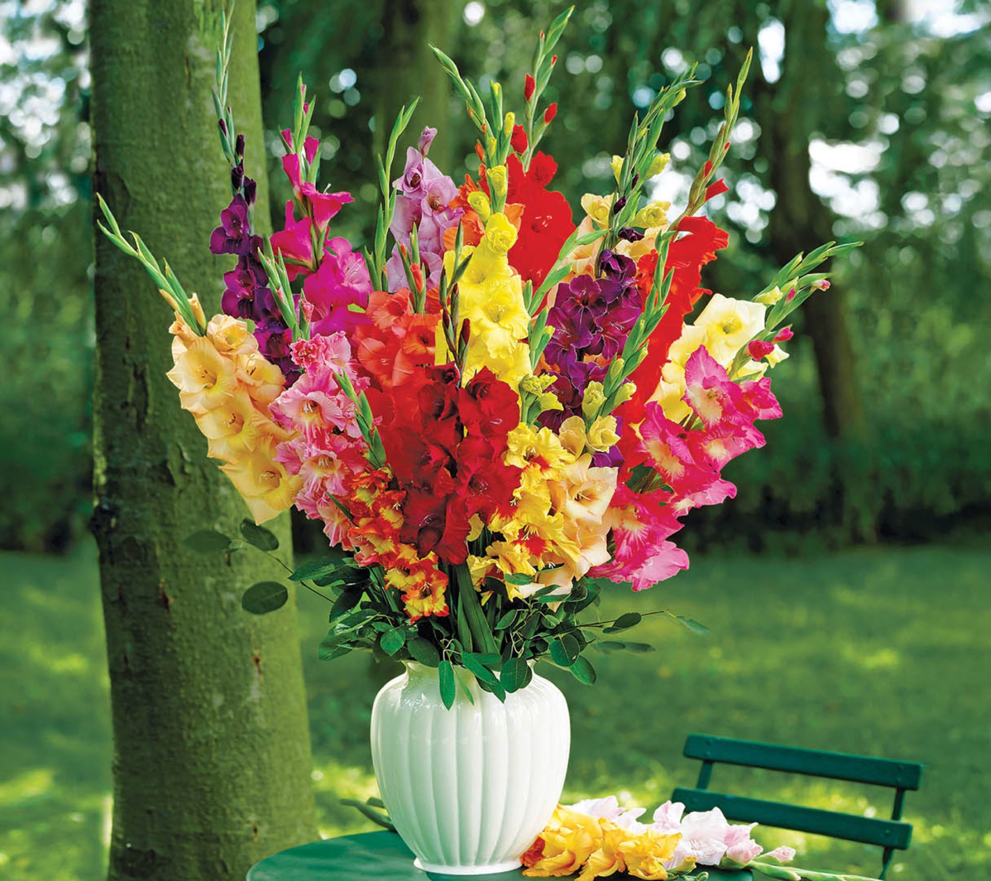 Infuse beds, borders, or patio pots with vibrant flair by planting this mix of large-flowering gladiolus bulbs. Throughout summer, tall, elegant spikes in a variety of striking shades create lively bouquets in your garden or as fresh-cut arrangements for your home. From De Jager.