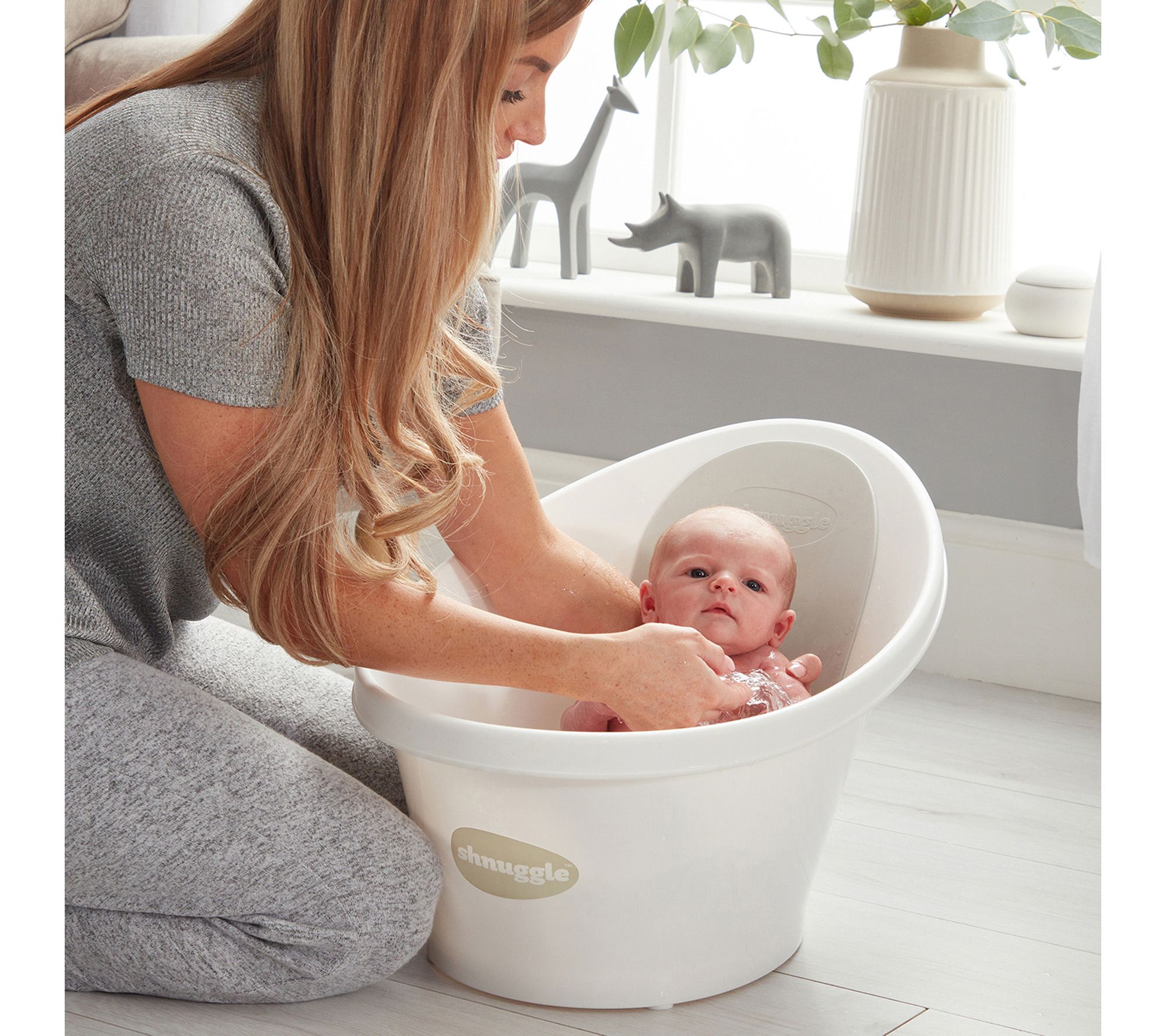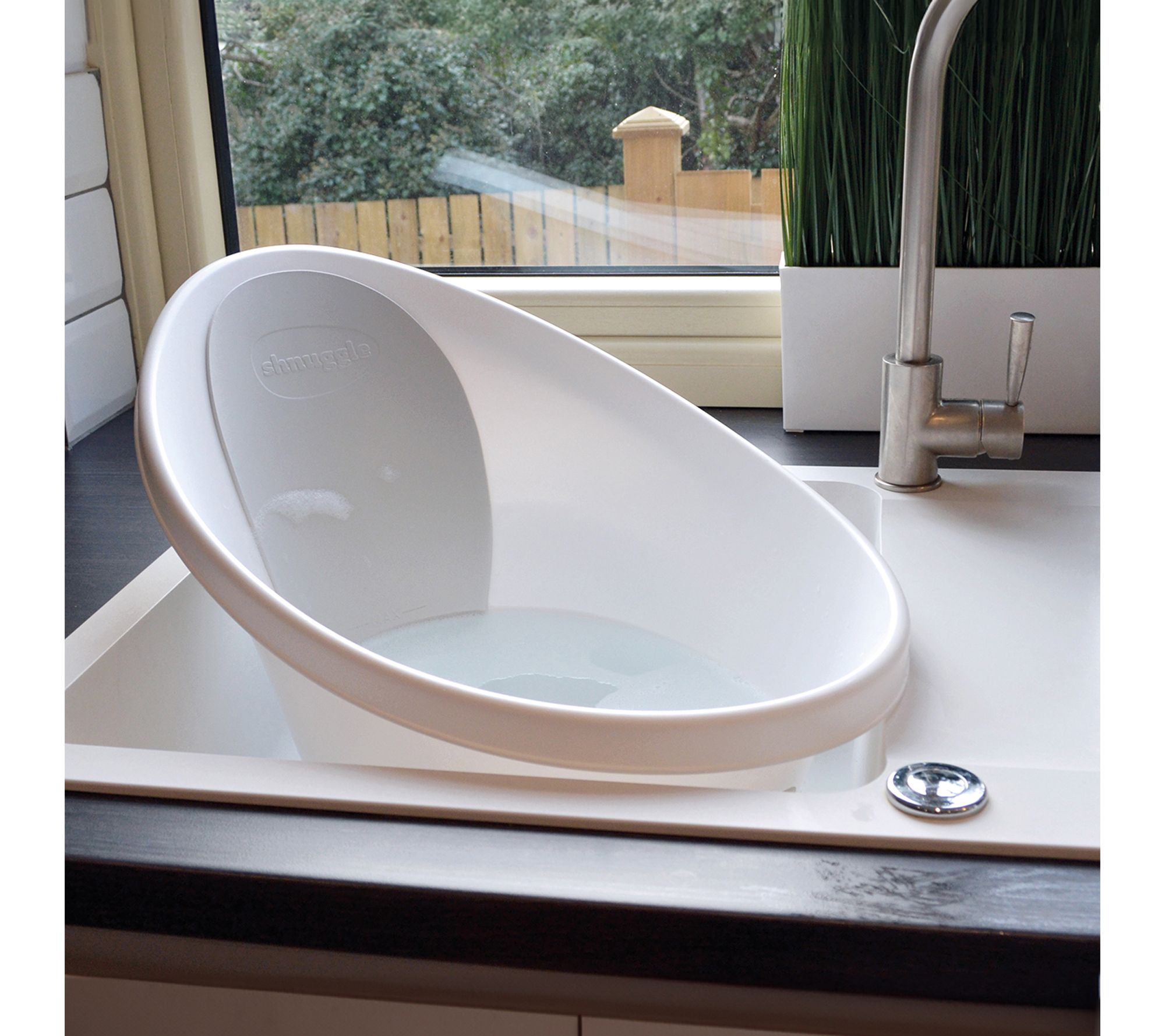 Make every bath time a calming moment with this baby bath, shaped to cradle little ones securely from their first days through months of growth. The supportive bump and soft foam backrest offer comfort while keeping baby upright, and its compact size fits easily in the sink or bath for convenient use. Lightweight and easy to move, it brings gentle reassurance to daily routines. From Shnuggle.