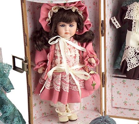 Show-Stoppers "Trudy Traveler" Porcelain Trunk Doll