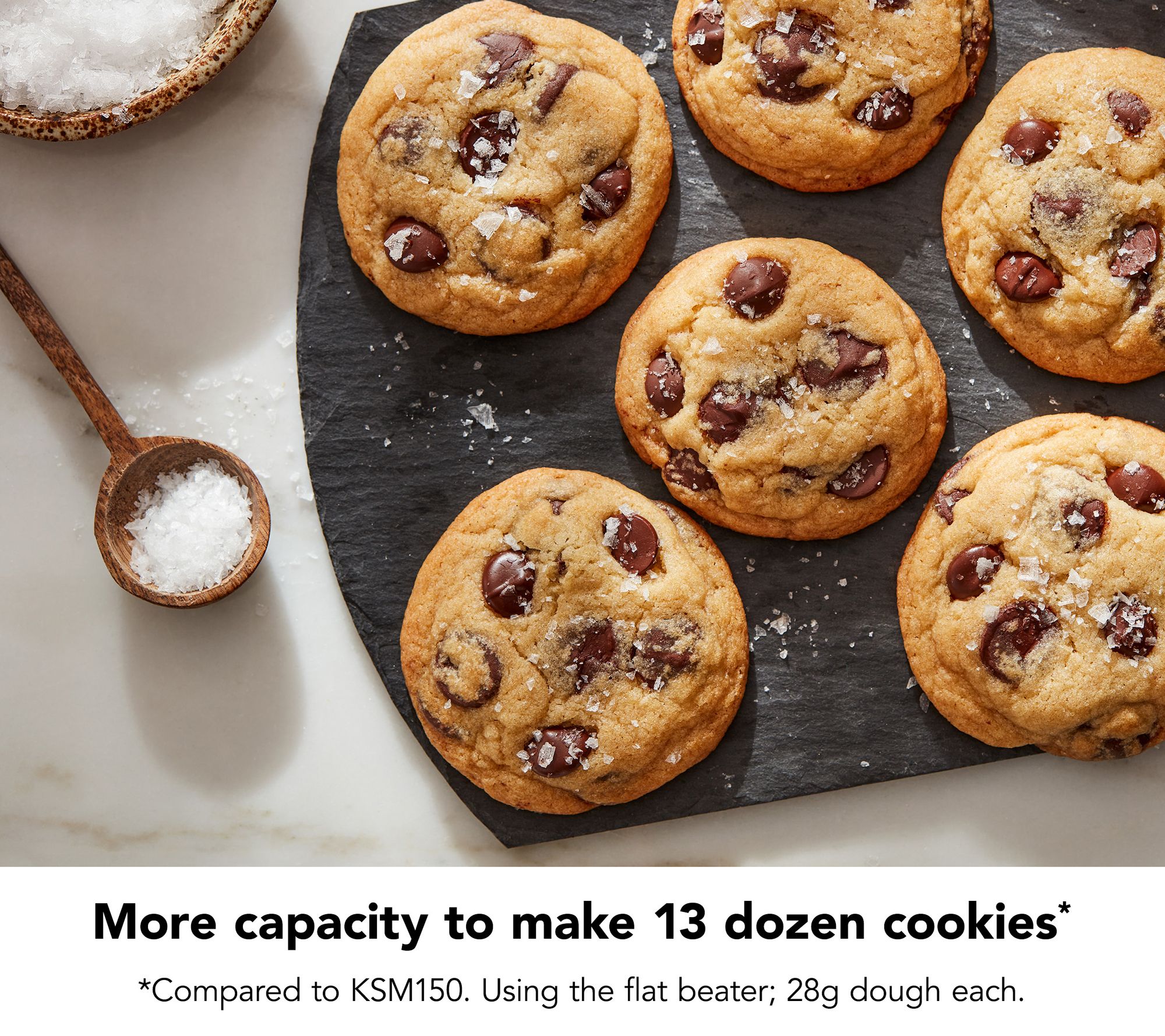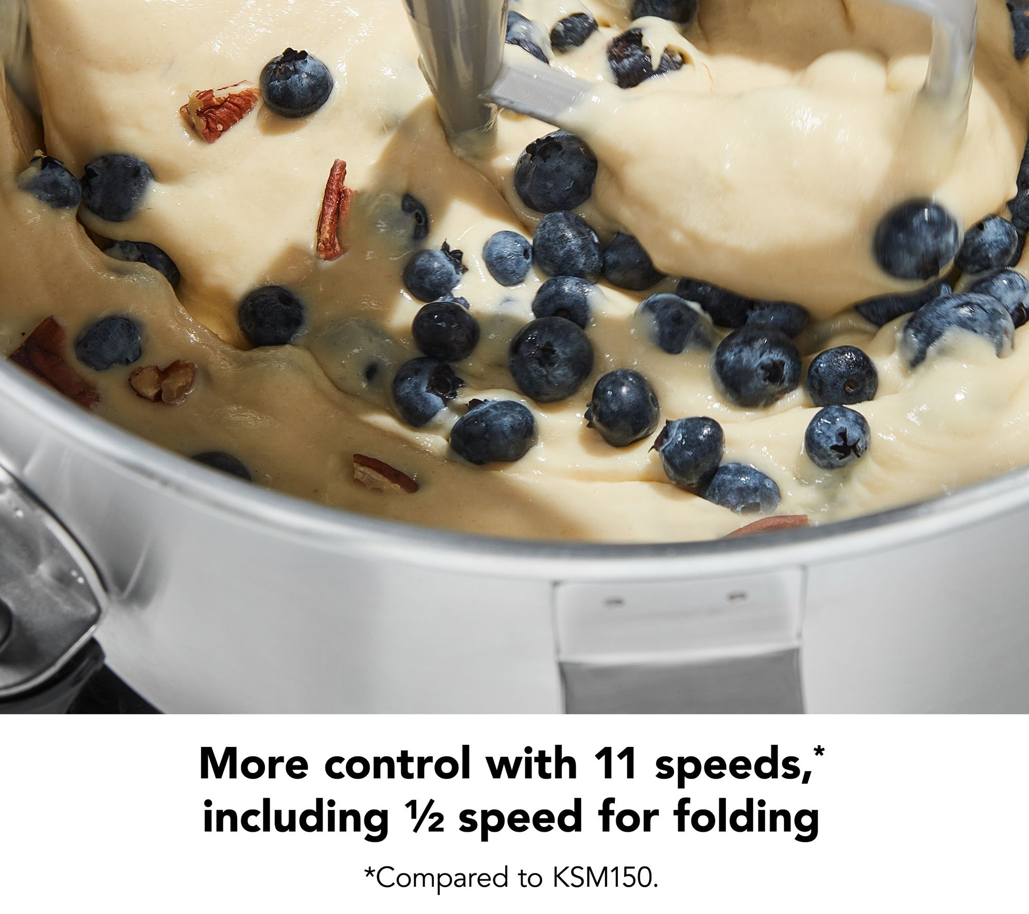 Take it all on! The KitchenAid Bowl-Lift stand mixer -- with a generous 7-qt capacity -- is ready to beat, mix, knead, shred, and even fold its way through baking-filled holidays and year-round recipes with professional performance. The sturdy, three-point locking bowl and 11 speed options (including half speed for delicate ingredients) offer the power and control to cook for a crowd. This kitchen hero tackles large batches -- up to 13 dozen of your signature cookies -- and dense ingredients like 7.5 lbs of mashed potatoes and 8.5 lbs of bread. (Holiday cookie exchange and Thanksgiving sides, handled!).