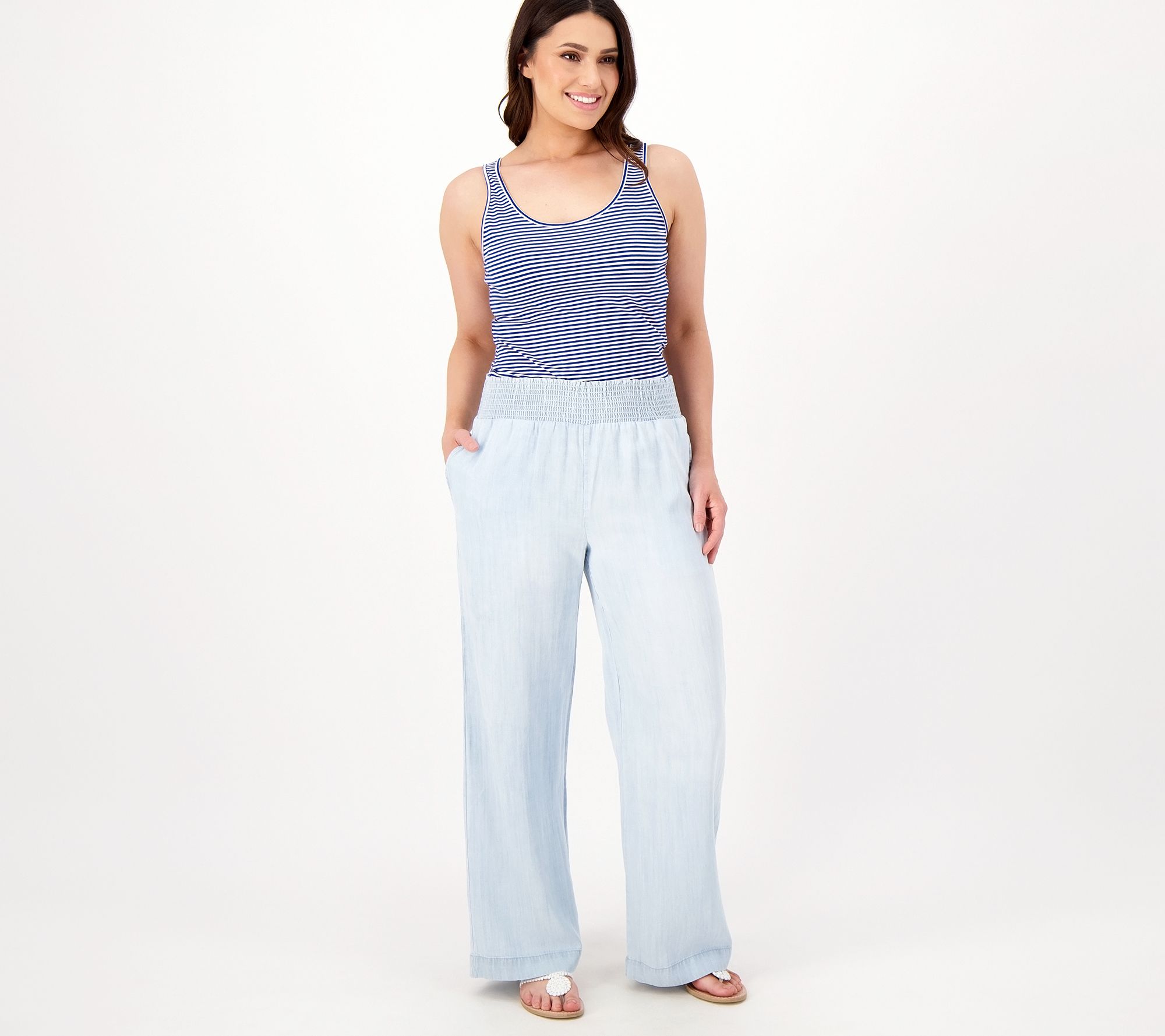 Leg Shape: wide leg; widens fashionably from thigh to leg opening