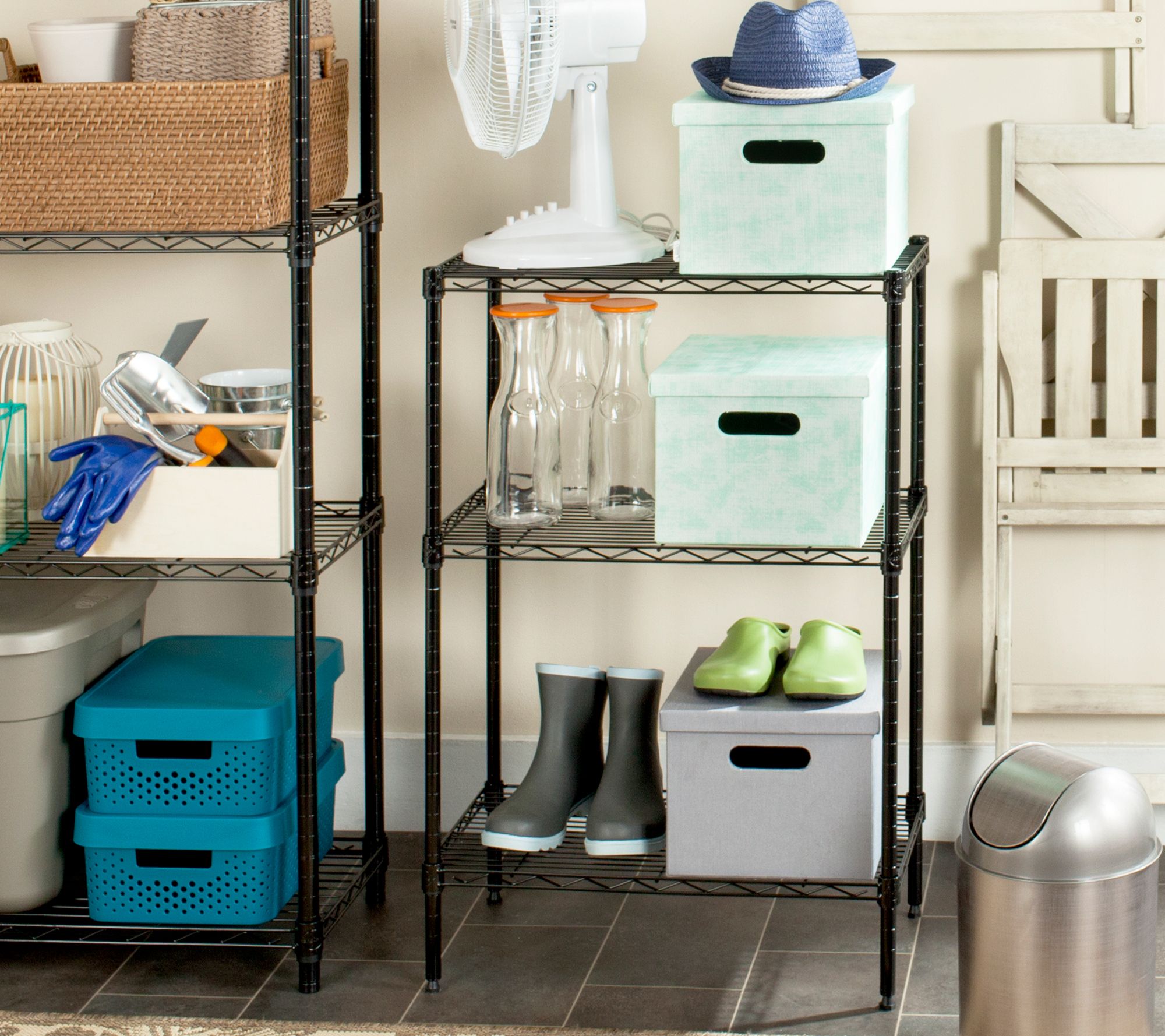 This heavy-duty three-tier wire shelf is your solution to storage problems.