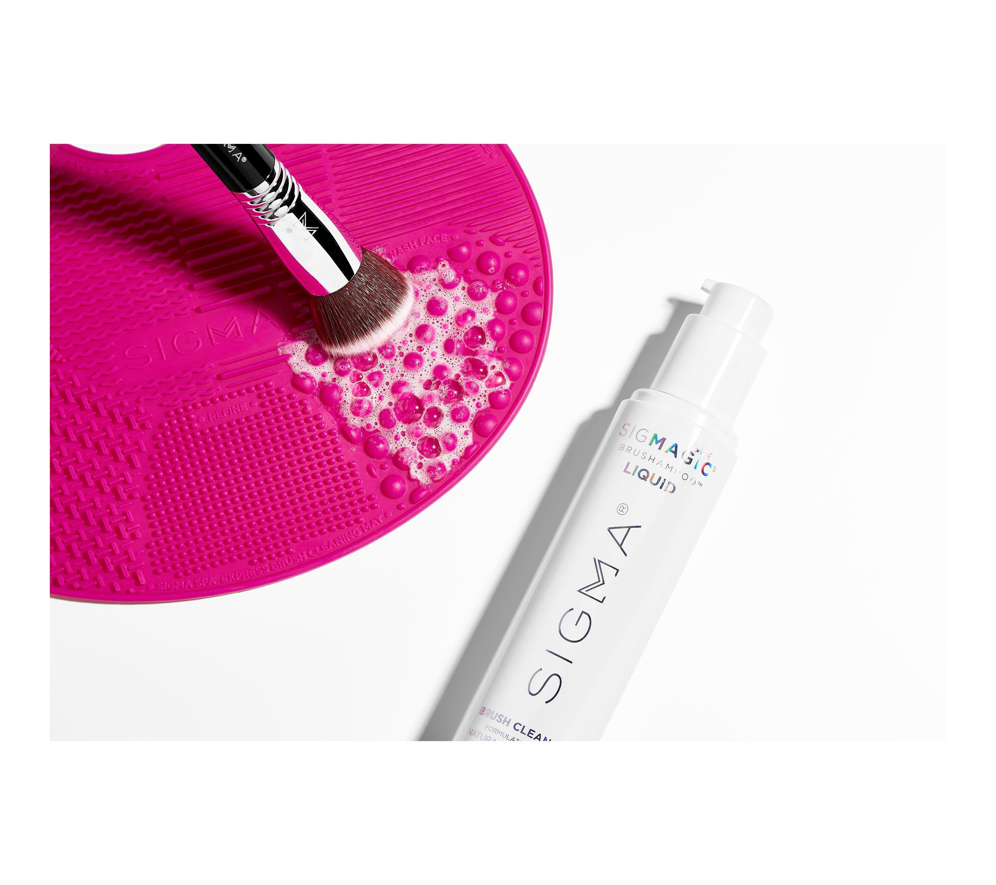 Achieve the appearance of a flawless-looking complexion and keep your tools in top shape with Sigma Beauty's three-piece Foundation & Cleaning Essentials set. The F80 Flat Kabuki brush features ultra-soft, dense fibers that buff and blend liquid or cream foundation seamlessly for the look of an airbrushed, streak-free finish. When it's time to clean, use the SigMagic Brush Cleaner. Formulated with coconut and palm oils, it works effortlessly to help remove makeup and oil, keeping your brushes soft and conditioned. Pair it with the Express Brush Cleaning Mat, designed with textures for brush cleansing right in your sink. Together, this trio delivers flawless-looking makeup application and easy, brush care -- all in one set.