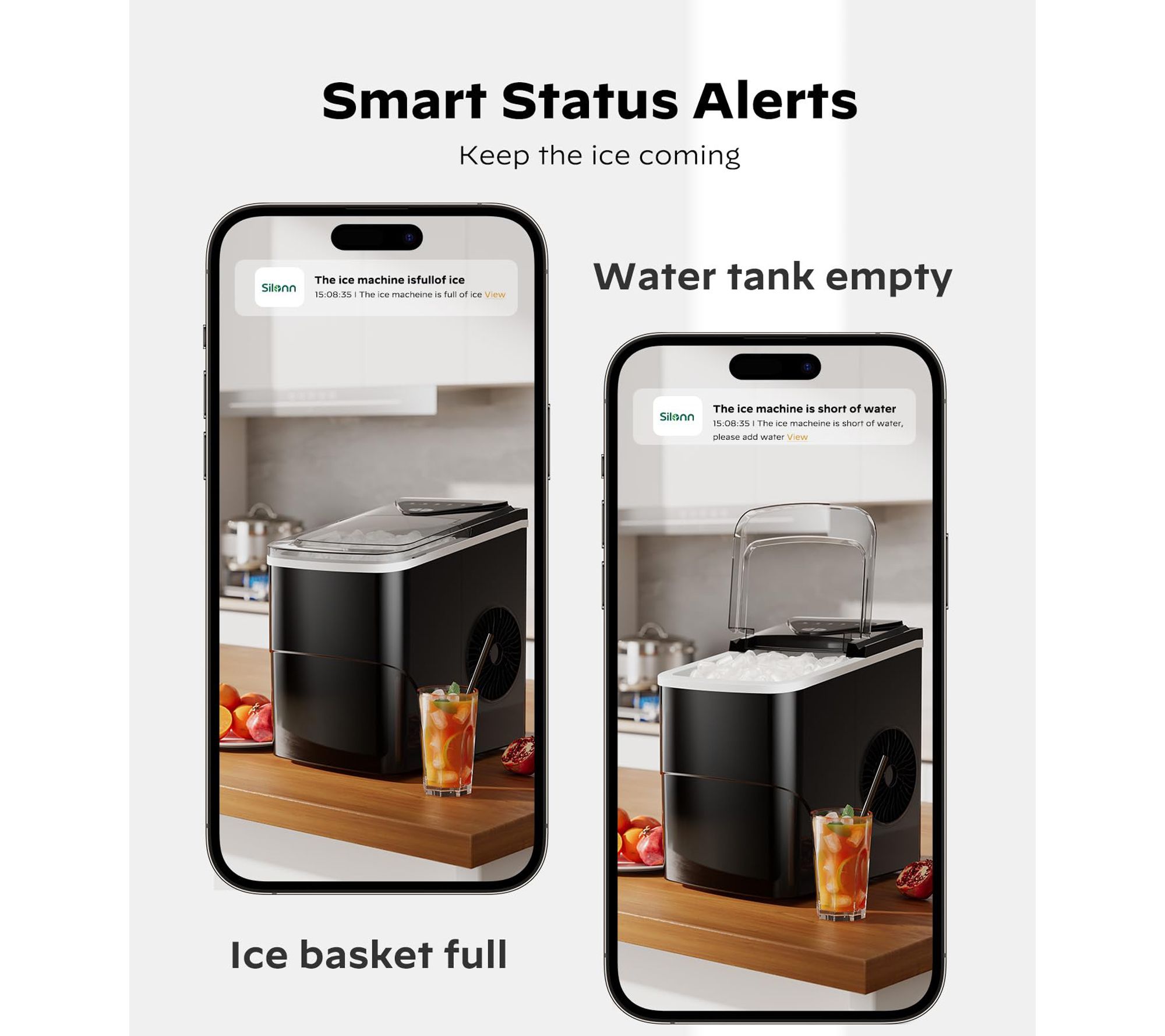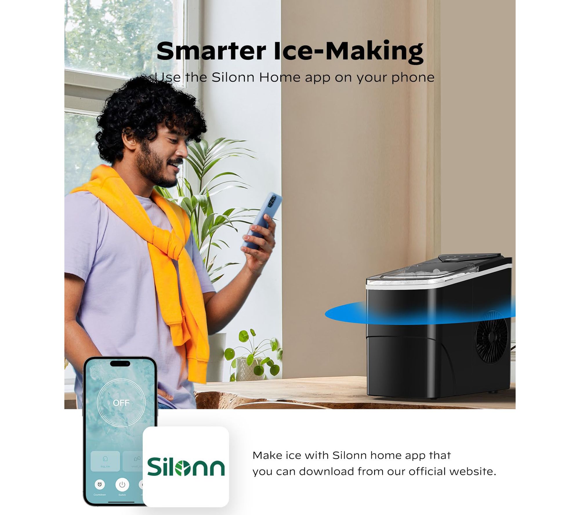 Make busy gatherings and daily meal prep effortless with this smart countertop ice maker. Quickly prepare cold drinks for friends or keep treats chilled with two ice cube sizes and rapid ice production. Control settings and receive reminders from your phone for fresh ice whenever you need it. From Silonn.