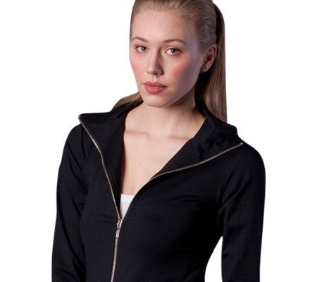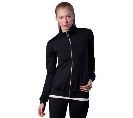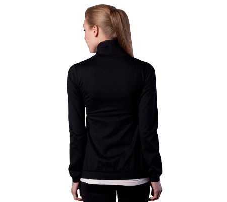 Geared up. Get moving in this workout jacket, made with moisture-wicking material and designed with a stylish silvertone metal zipper. It flatters your shape with a loose fit, then comes in at the waistband. From Silver Icing.