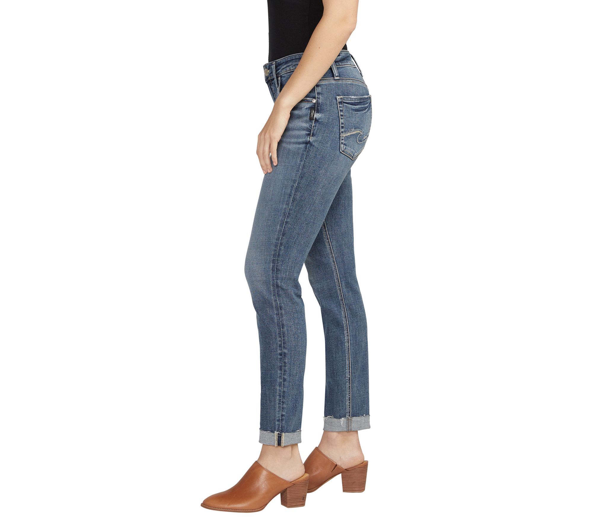 Show off your curves with a laid-back vibe in these Silver Jeans Co. boyfriend mid-rise slim jeans. The relaxed fit at the hips ensures maximum comfort, while the slim leg opening flatters your silhouette. From Silver Jeans Co.