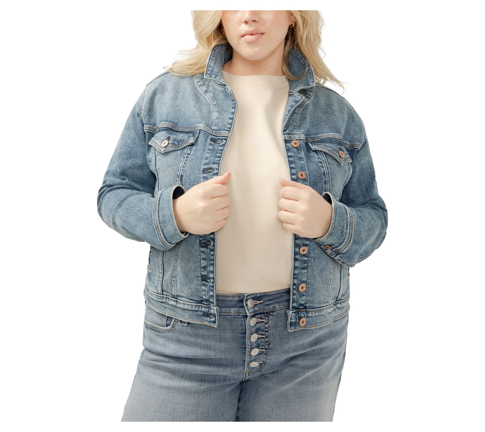 Step into effortless style with the Silver Jeans Co. notched crop jean jacket, where classic denim meets modern flair. Its cropped silhouette offers a flattering twist on the timeless denim jacket, while the notched collar brings a distinct touch of sophistication. Perfect for layering, this jacket features a seasonal design that transitions smoothly across occasions. Pair it with your favorite jeans or skirts for a look that's both versatile and chic. From Silver Jeans Co.