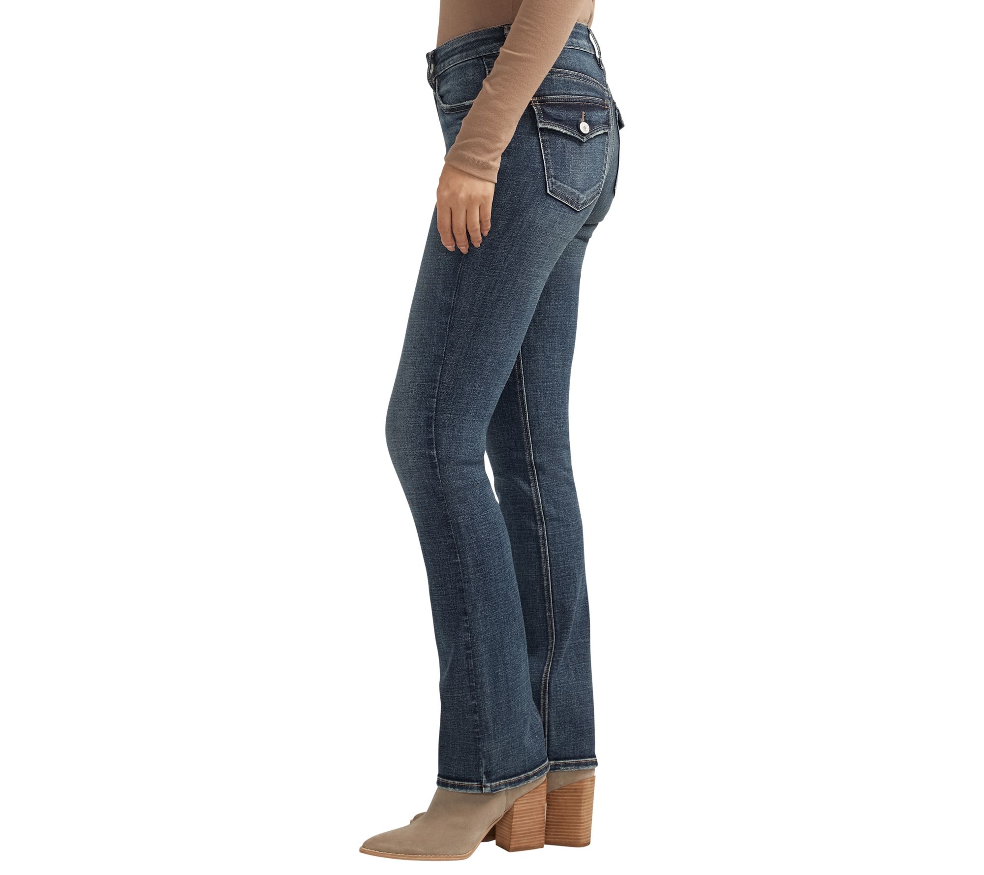 Silver Jeans Co. Suki mid rise slim bootcut jeans are designed to enhance your shape with ease in the hip and thigh, creating a flattering silhouette. The contoured waistband ensures a zero-gap fit, while the power stretch denim offers great flexibility and shape retention. From Silver Jeans Co.