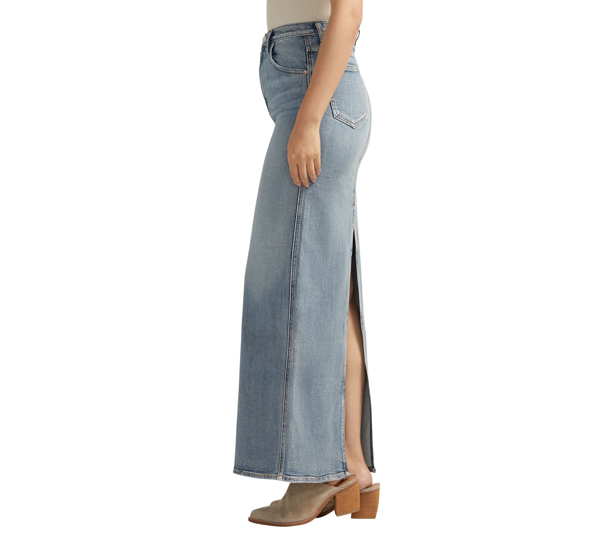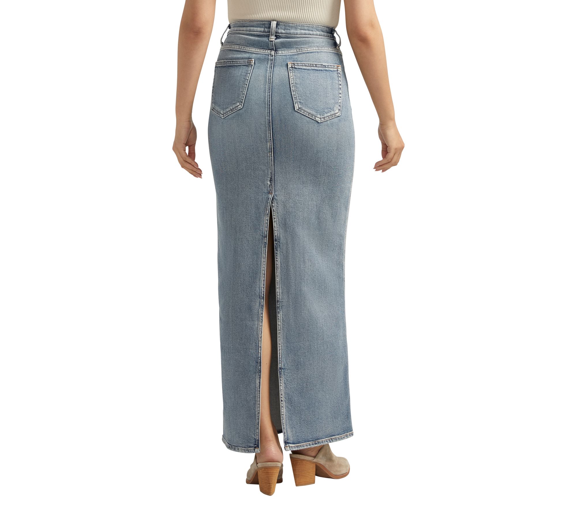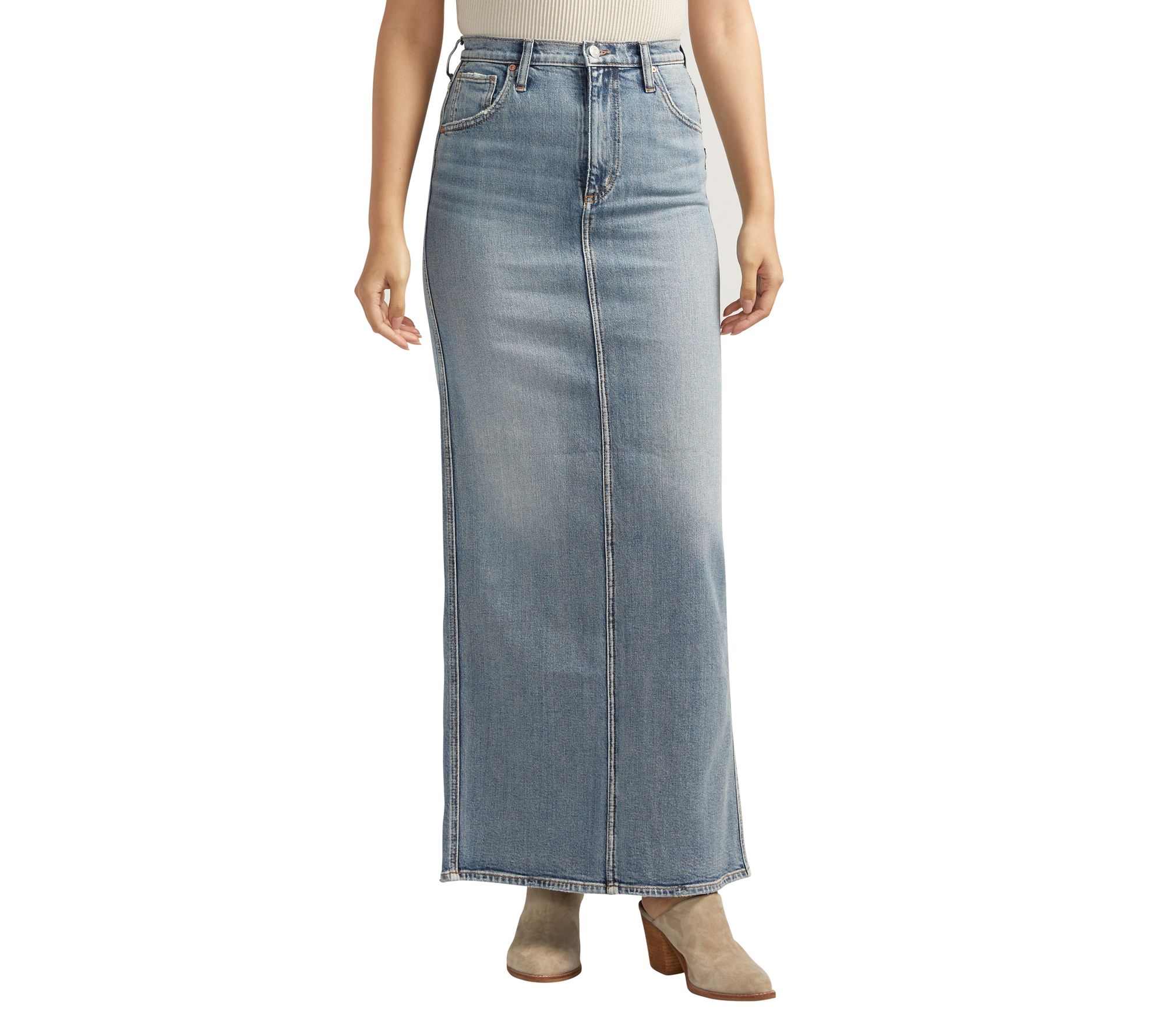 Make a statement in the Silver Jeans Co. back-slit maxi jean skirt. With its light-medium wash and flattering back slit, this denim skirt is perfect for any occasion. Dress it up or down and enjoy the comfort of low-stretch denim with a vintage-inspired look. From Silver Jeans Co.