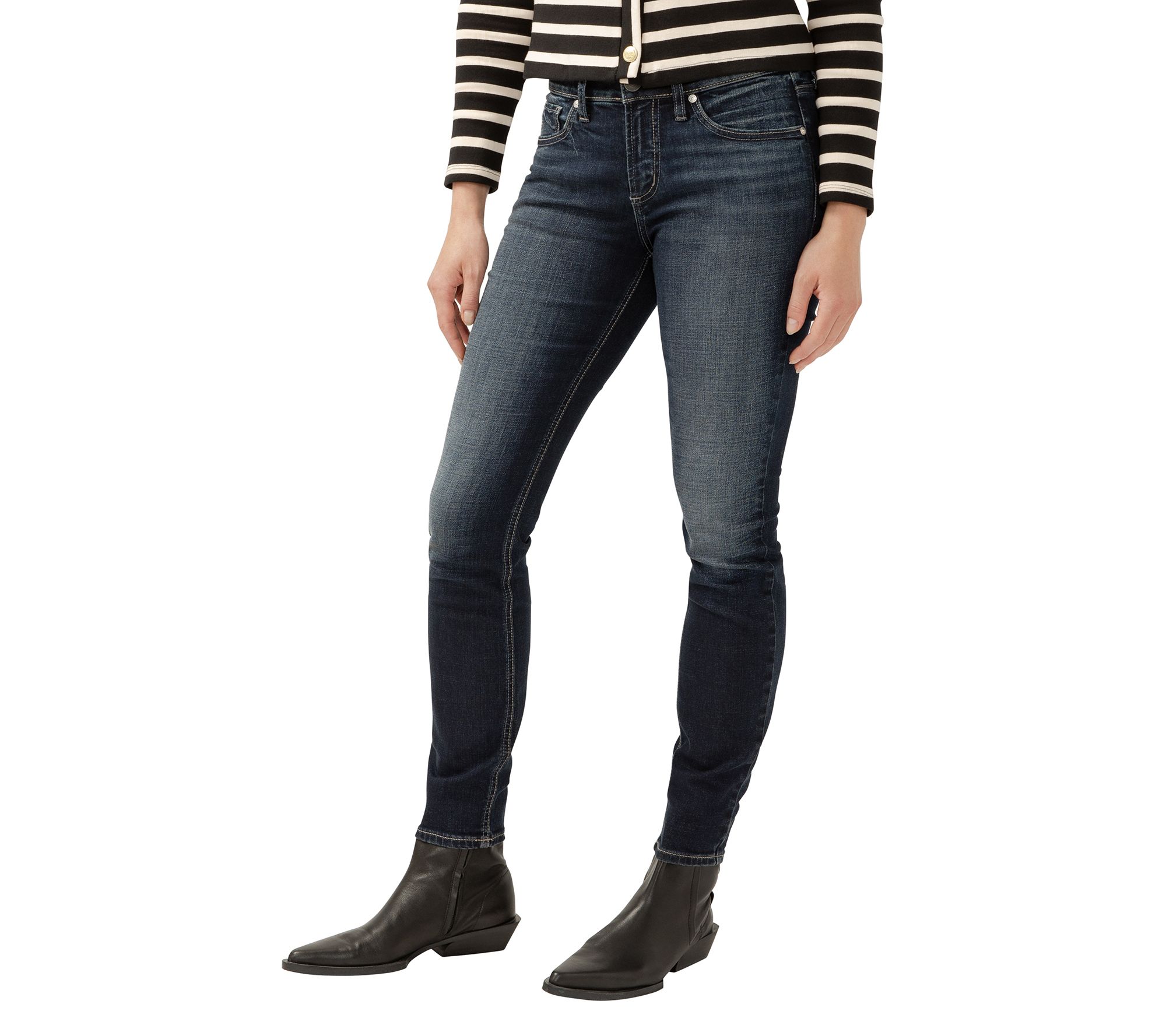 Slip into the Silver Jeans Co. Suki mid-rise skinny jeans for a silhouette that effortlessly flatters your natural shape. With Luxe Stretch fabric, these jeans hug your hips and thighs for ultimate comfort, while the zero-gap waistband ensures a perfect fit. From Silver Jeans Co.