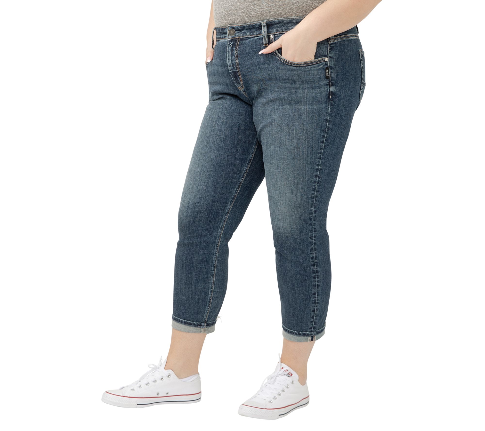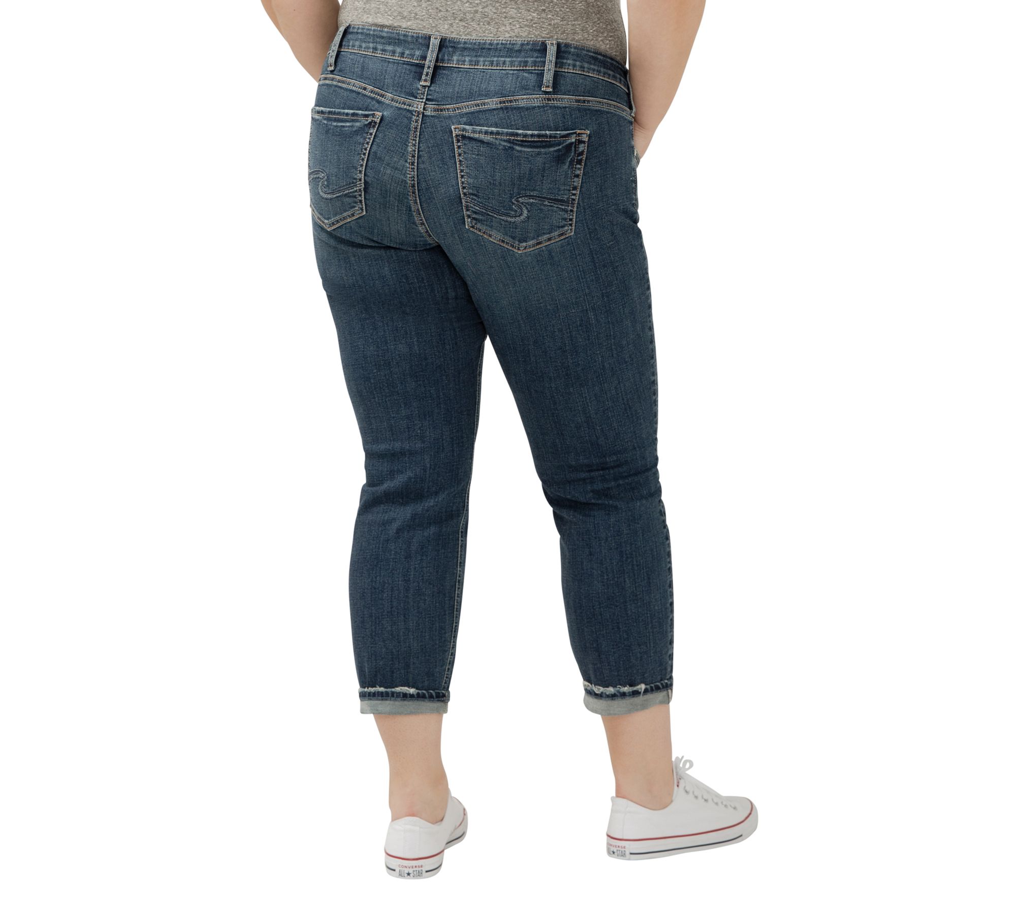 Looking to dress up your everyday style or keep it casual on weekends, these boyfriend jeans bring a relaxed vibe with a slim-leg fit that flatters from every angle. The mid-rise design pairs effortlessly with tees or blouses for a look that's easy and versatile. From Silver Jeans.