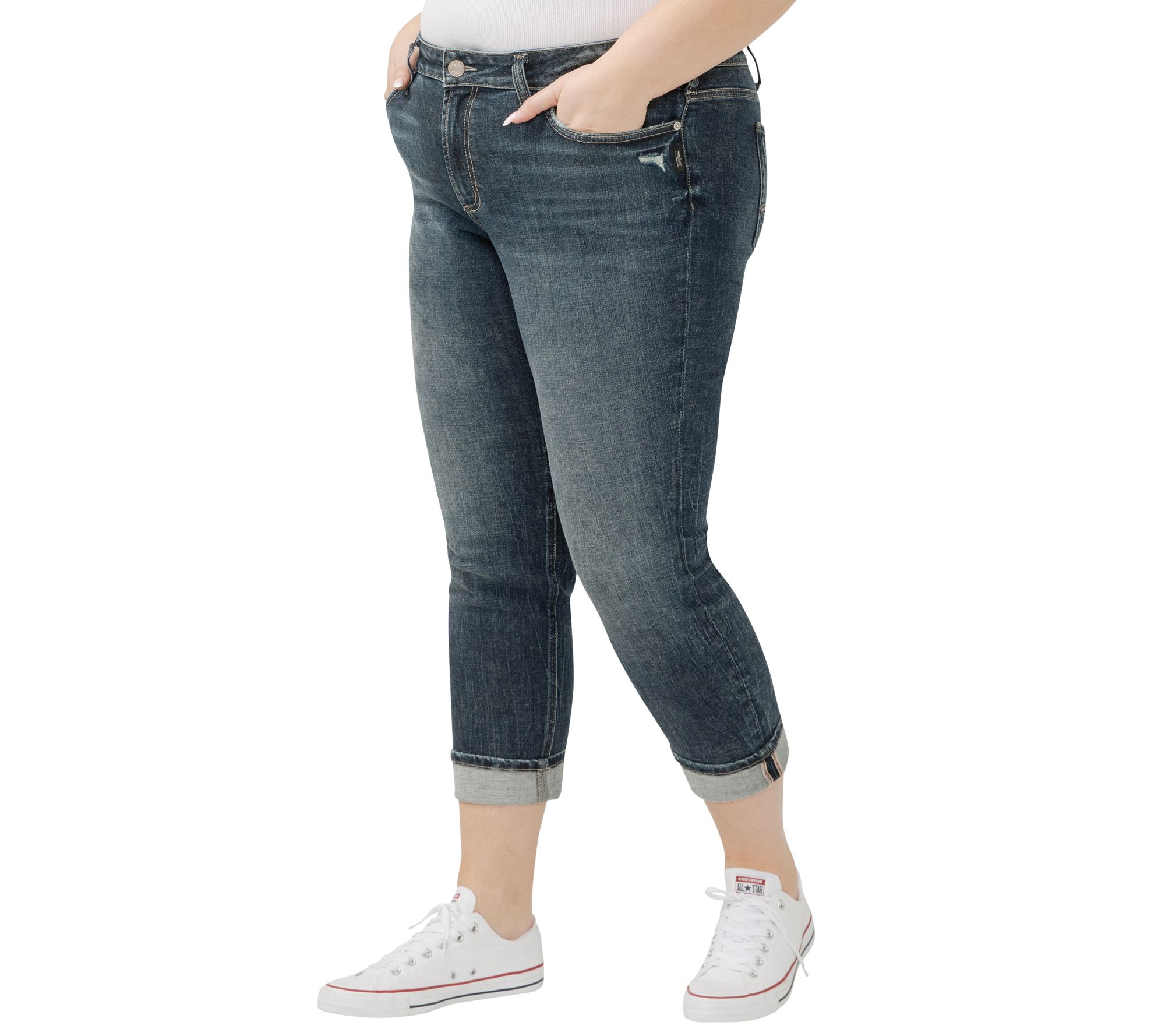 Head out for coffee dates or strolls downtown in these ankle-grazing straight-leg jeans, crafted with soft, Power Stretch woven denim that moves as you do. The fitted shape, mid rise, and contoured waistband deliver a flattering silhouette and zero-gap fit, making them a versatile choice season after season. From Silver Jeans Co.