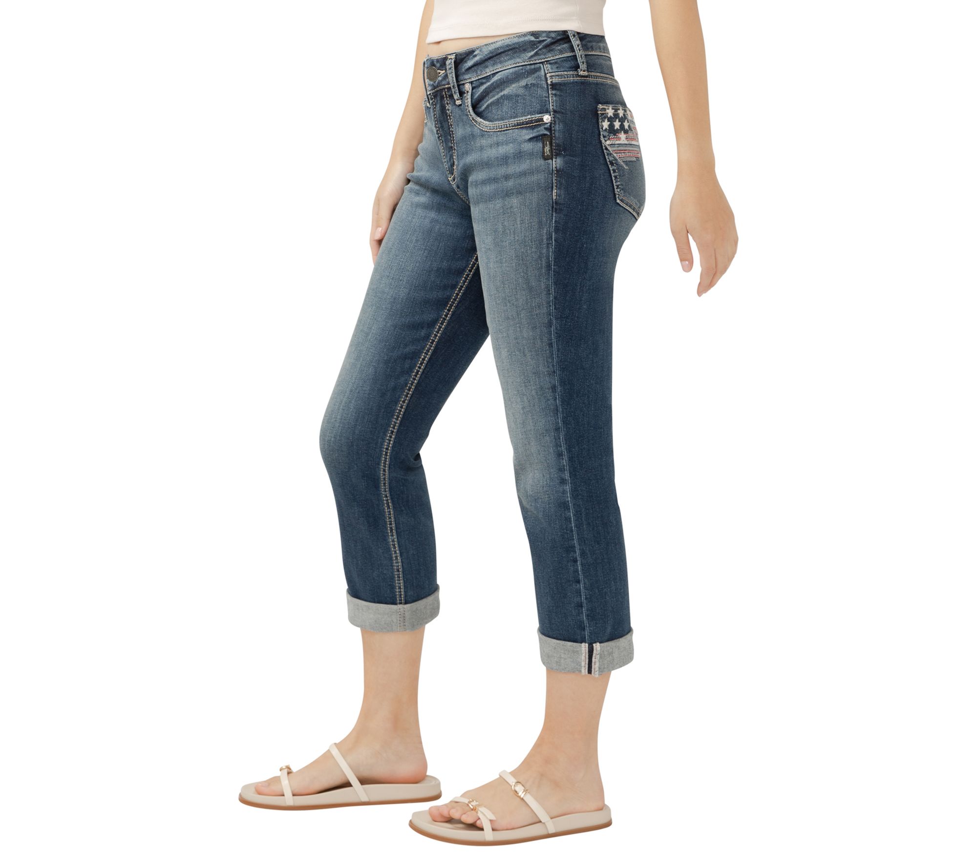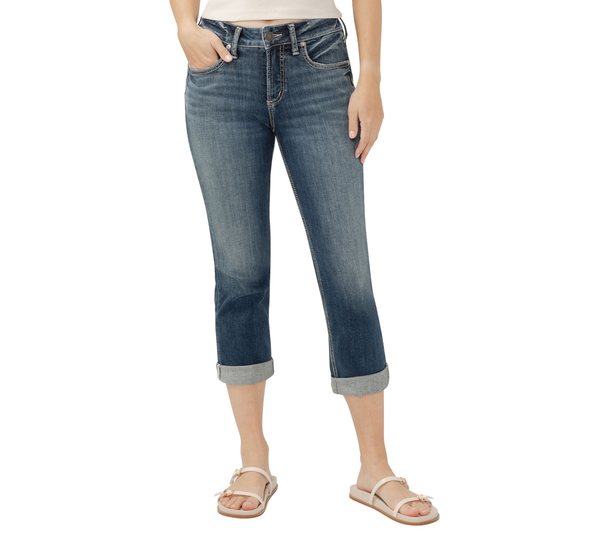 Brunch with friends or a casual stroll just got an upgrade with these capri pants. The classic denim feels right at home anywhere the day takes you, featuring signature style lines and a flattering mid-rise fit that moves with you. From Silver Jeans.