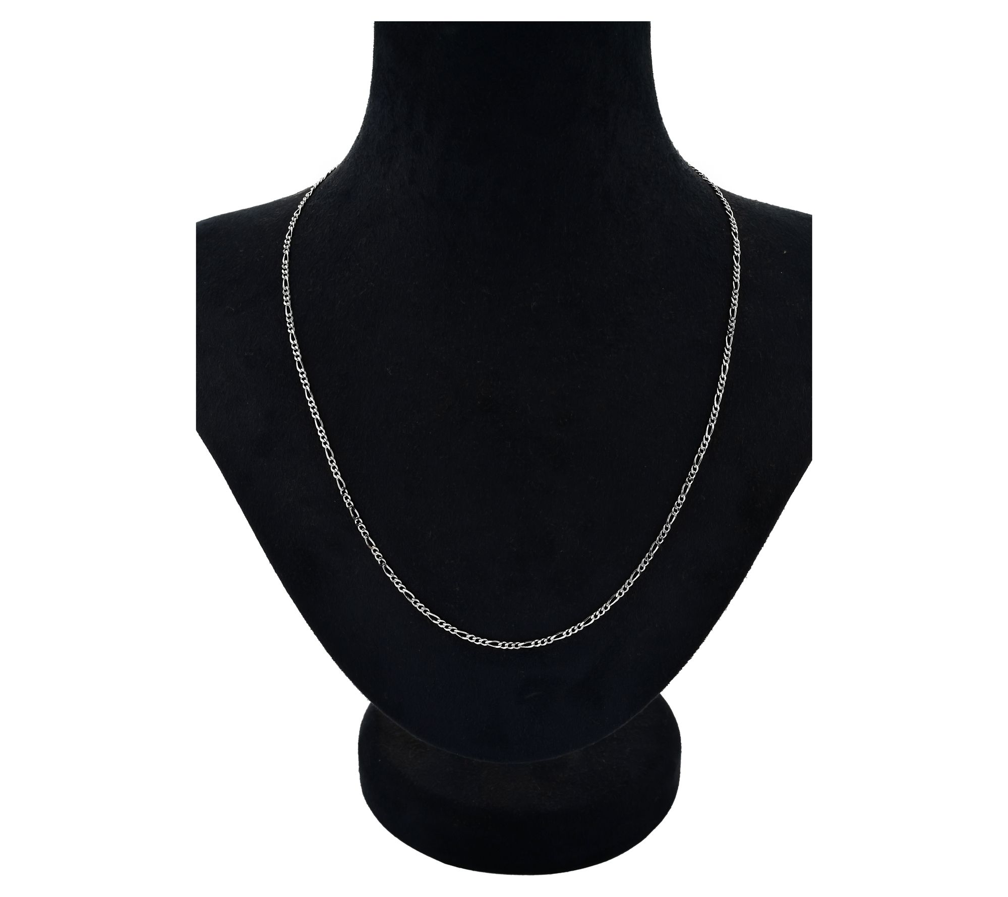 • Figaro chain link; polished and rhodium finish