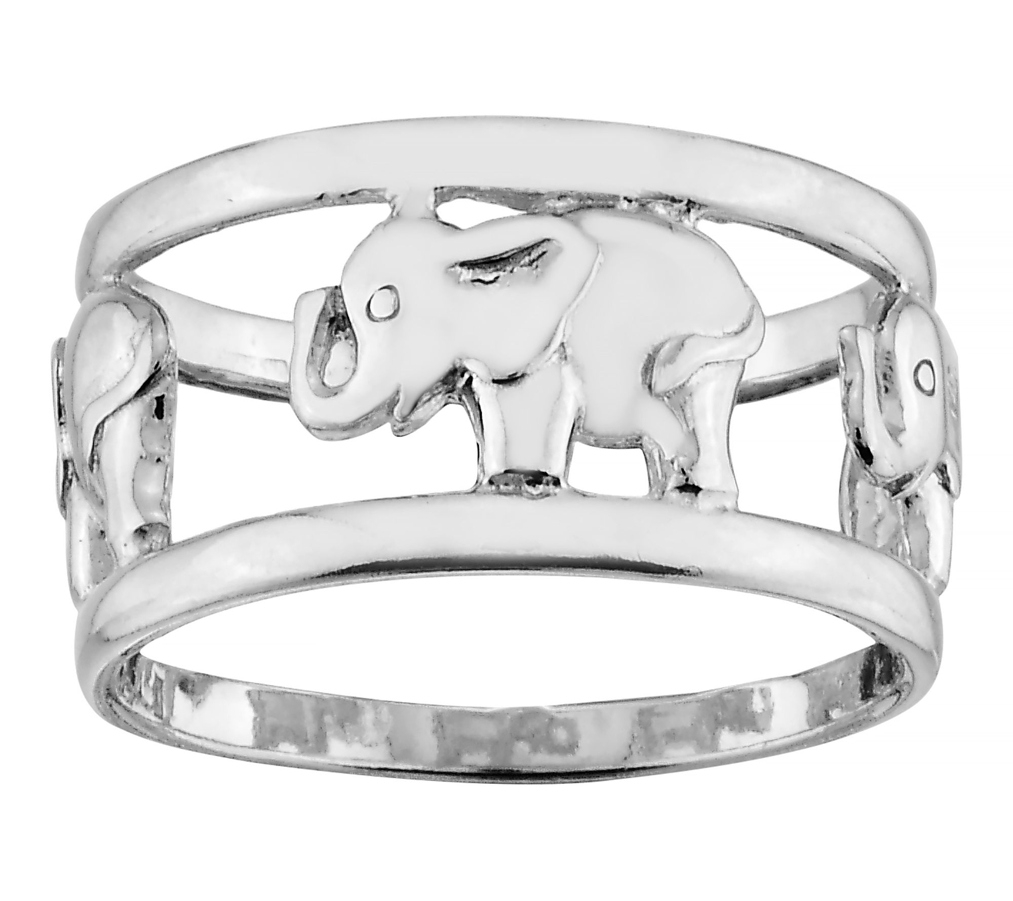 • Band ring with elephant design; polished finish