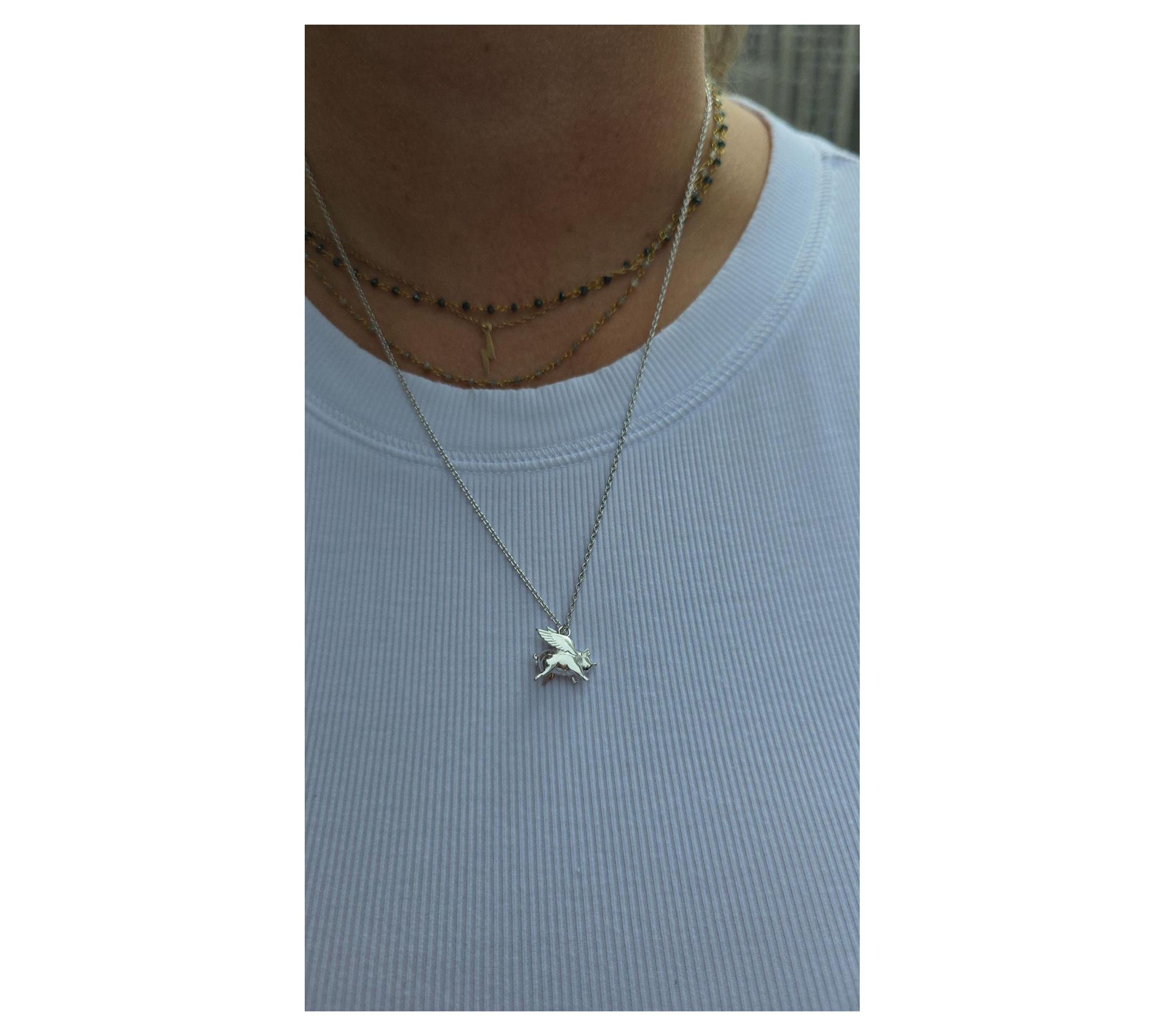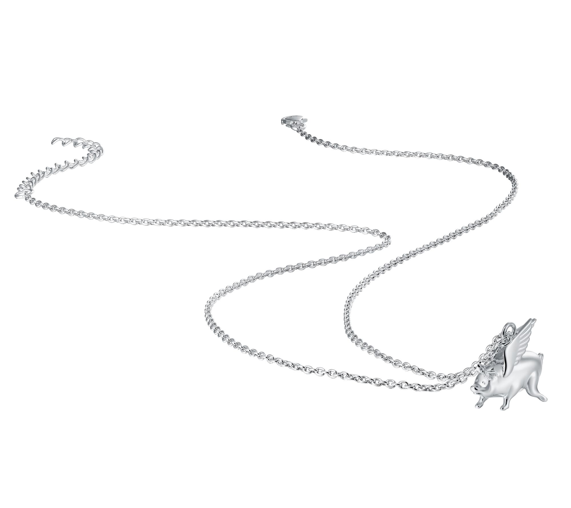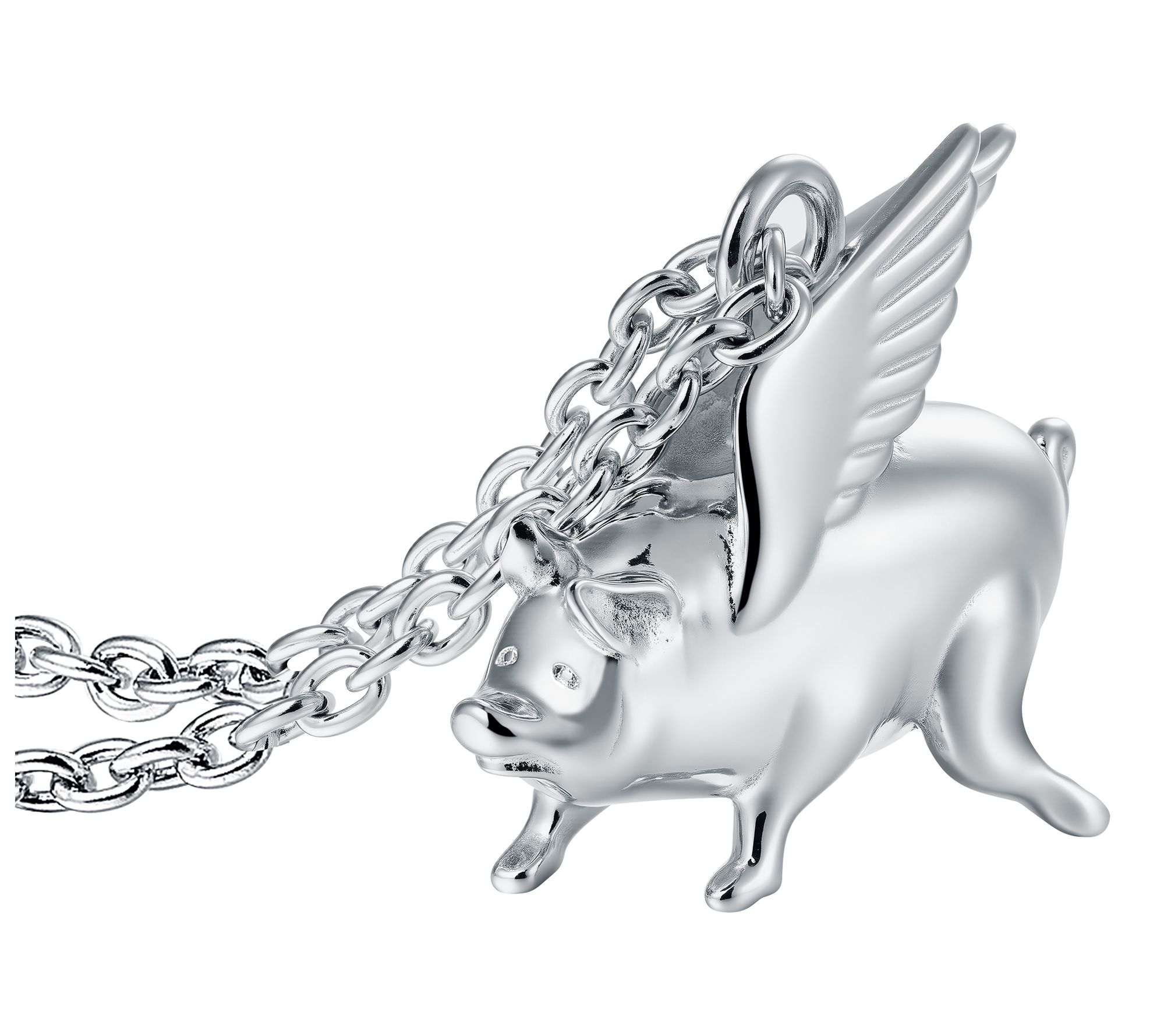 • Flying pig pendant; cable link chain