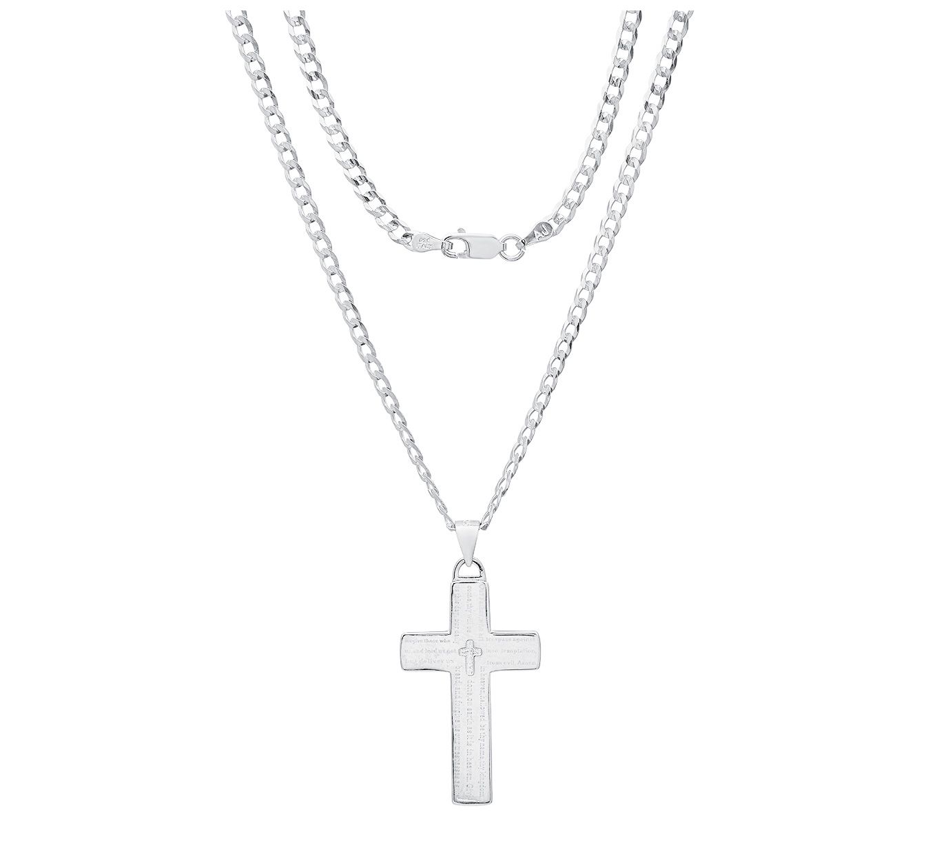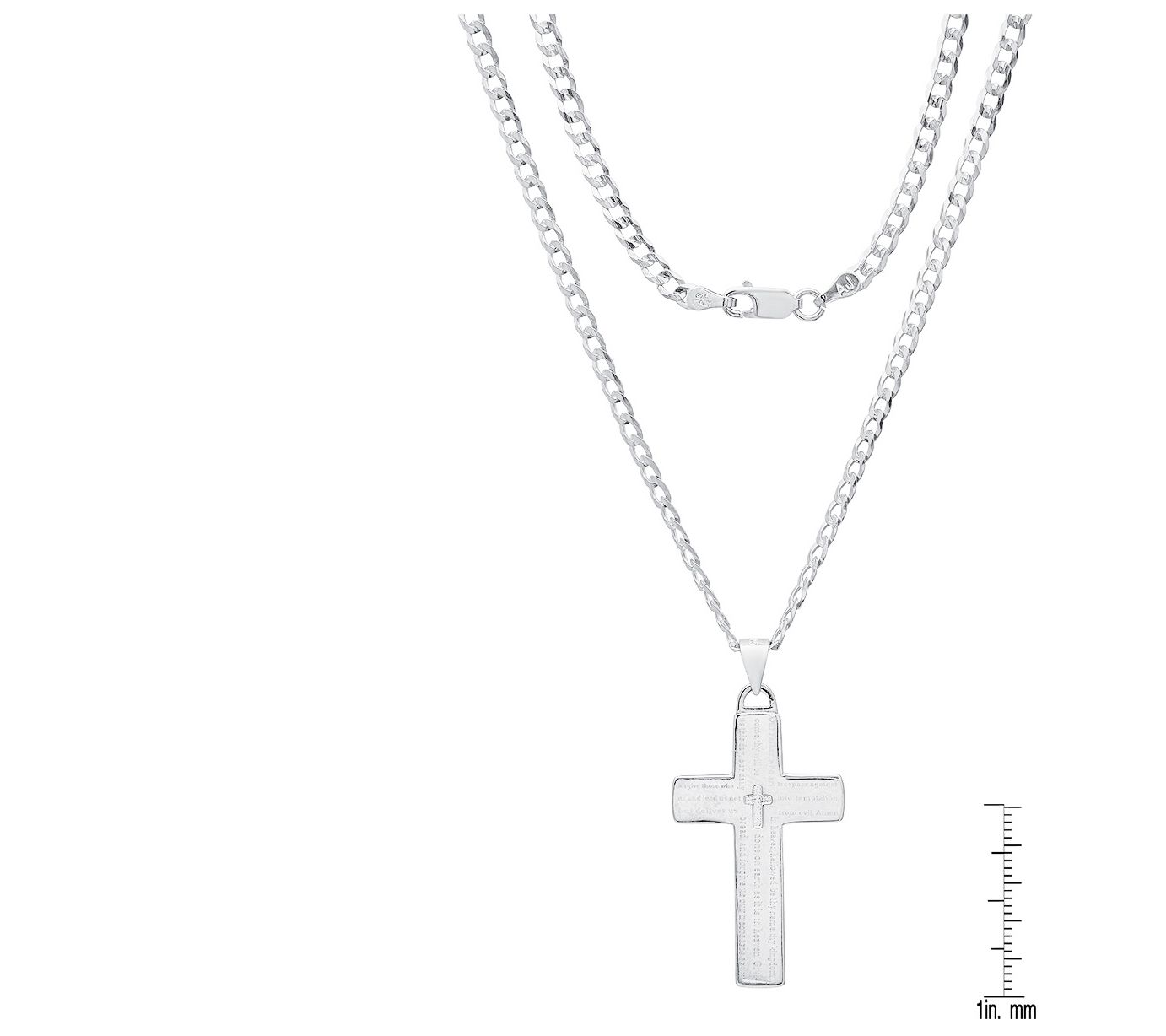 Silver Style Lord's Prayer Cross Pendant w/ Chain, Sterling