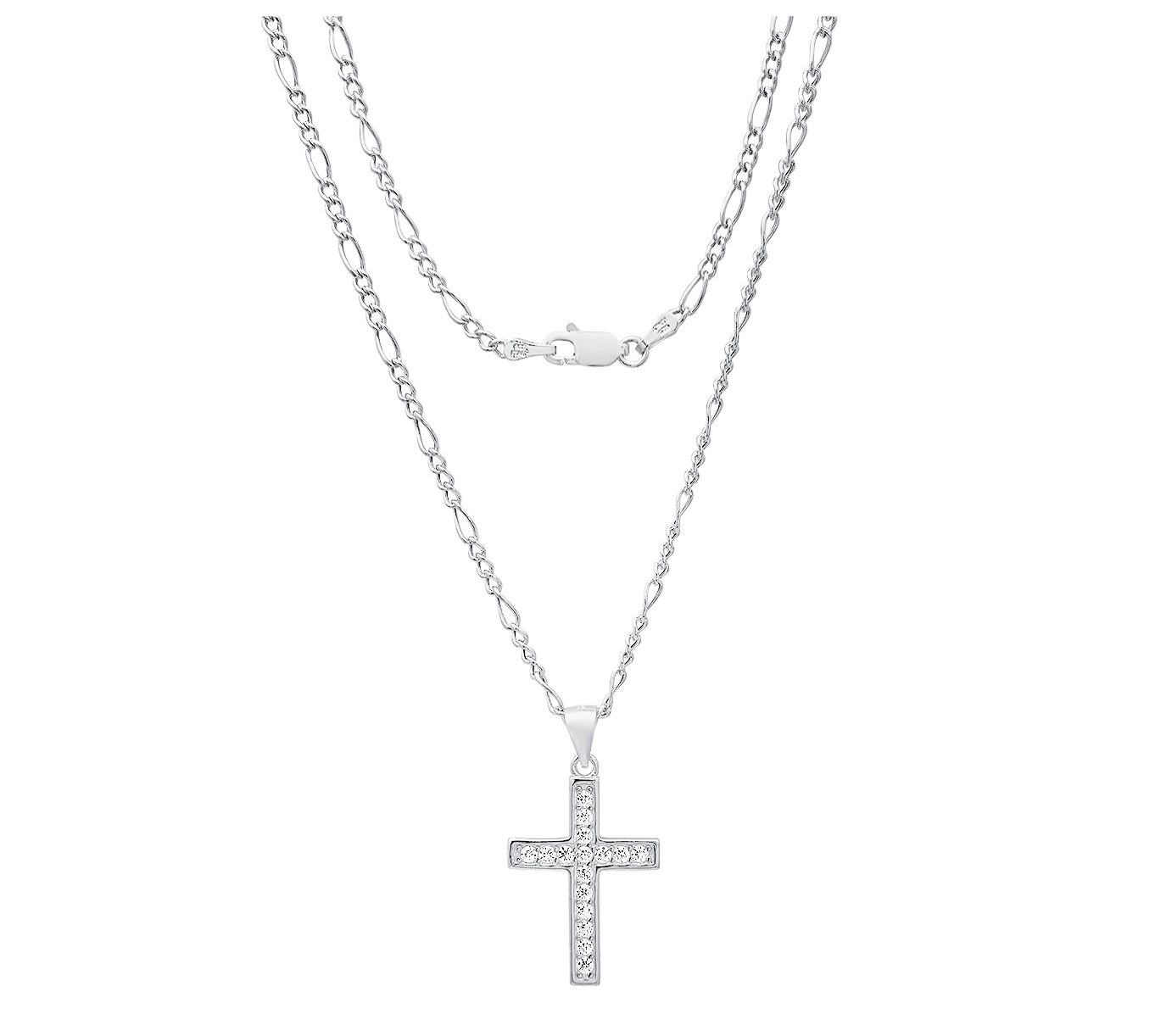 Whether you're choosing jewelry for Sunday service or adding a touch of sentiment to everyday layers, this petite cross pendant in sterling silver brings subtle shine to meaningful moments. Sparkling round simulated cubic zirconia add shimmer, while the classic profile keeps things versatile for day-to-evening styling. From Silver Style®.