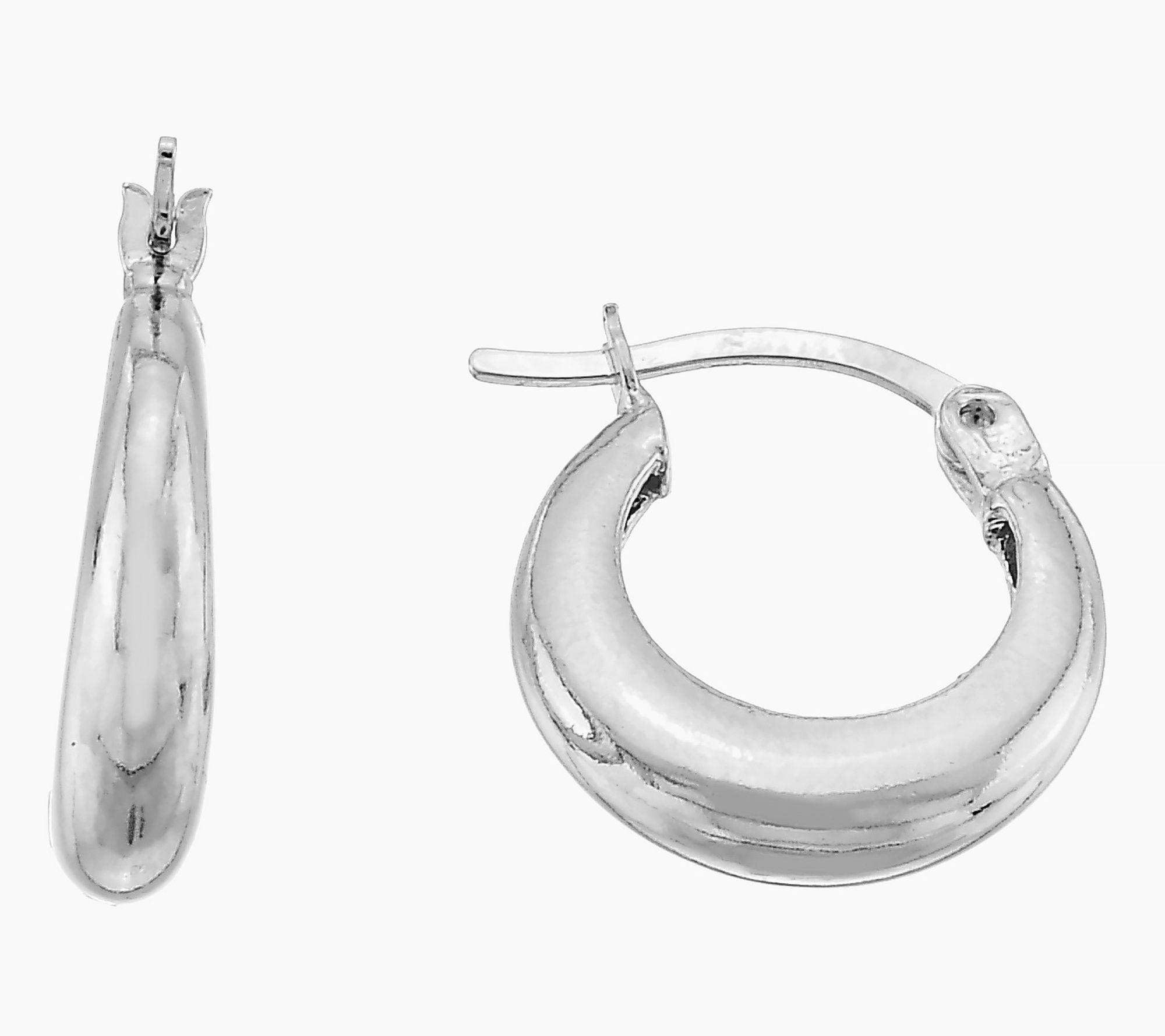 Add a bold new accent to your wardrobe with these chunky hoop earrings -- crafted in either rhodium-plated sterling silver for an eye-catching shine or 14K yellow gold-plated sterling silver for a warm, golden glow. Whether you're heading to brunch or dressing up for date night, their soft, rounded silhouette and polished finish catch the light beautifully, adding instant sophistication to any look. From Silver Style®.
