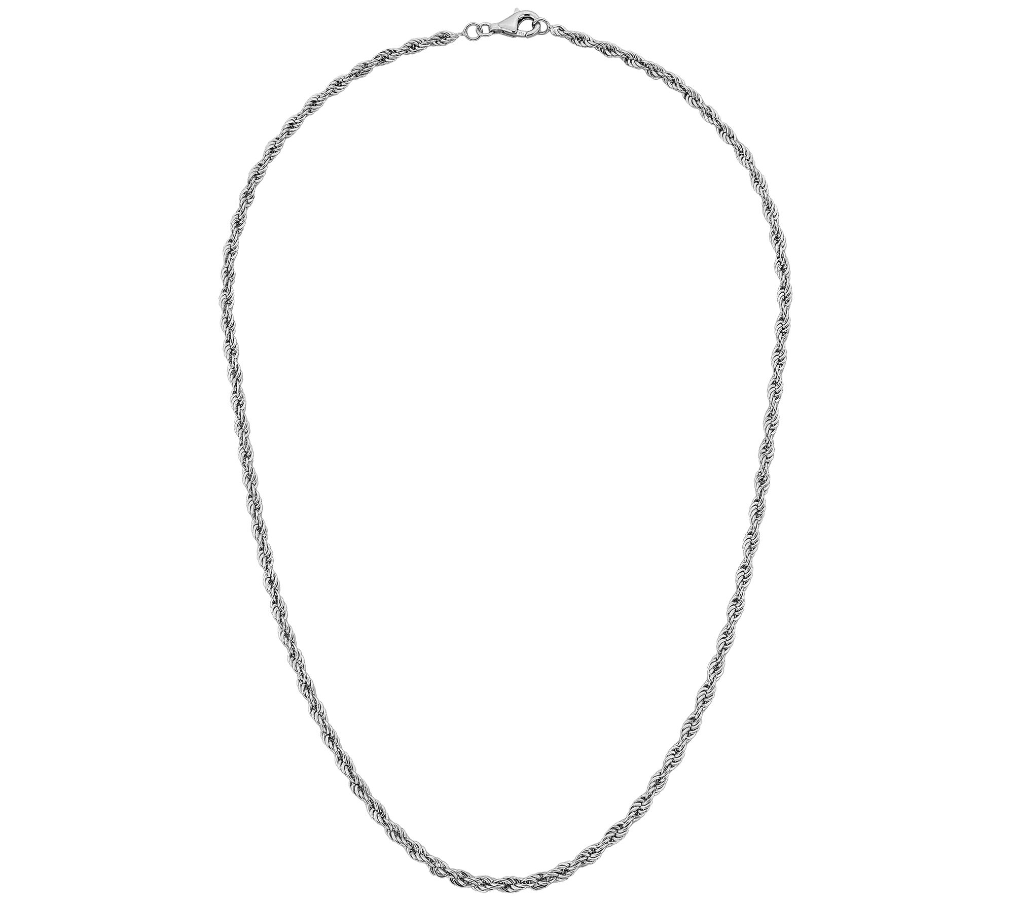 Imagine the shimmer and sparkle as you step out wearing this stunning solid rope chain necklace. This versatile piece, with its bold yet comfortable design, promises to elevate any outfit, whether it's a casual daytime look or an evening ensemble. From Silver Style.