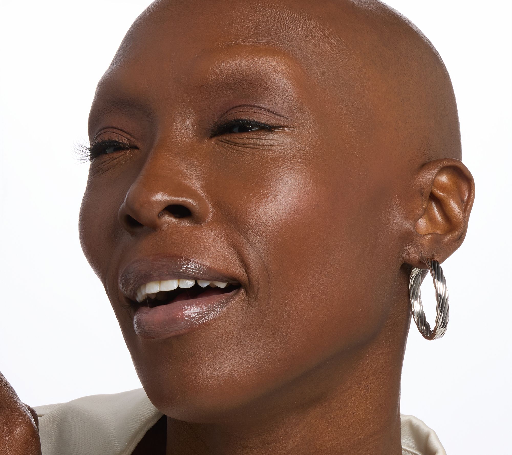 • Textured and rhodium finish; hoop design