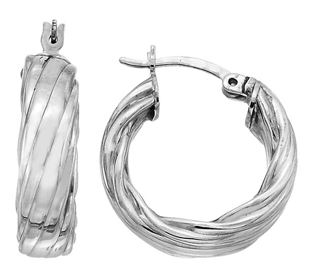 • Twisted hoop design; textured and rhodium finish