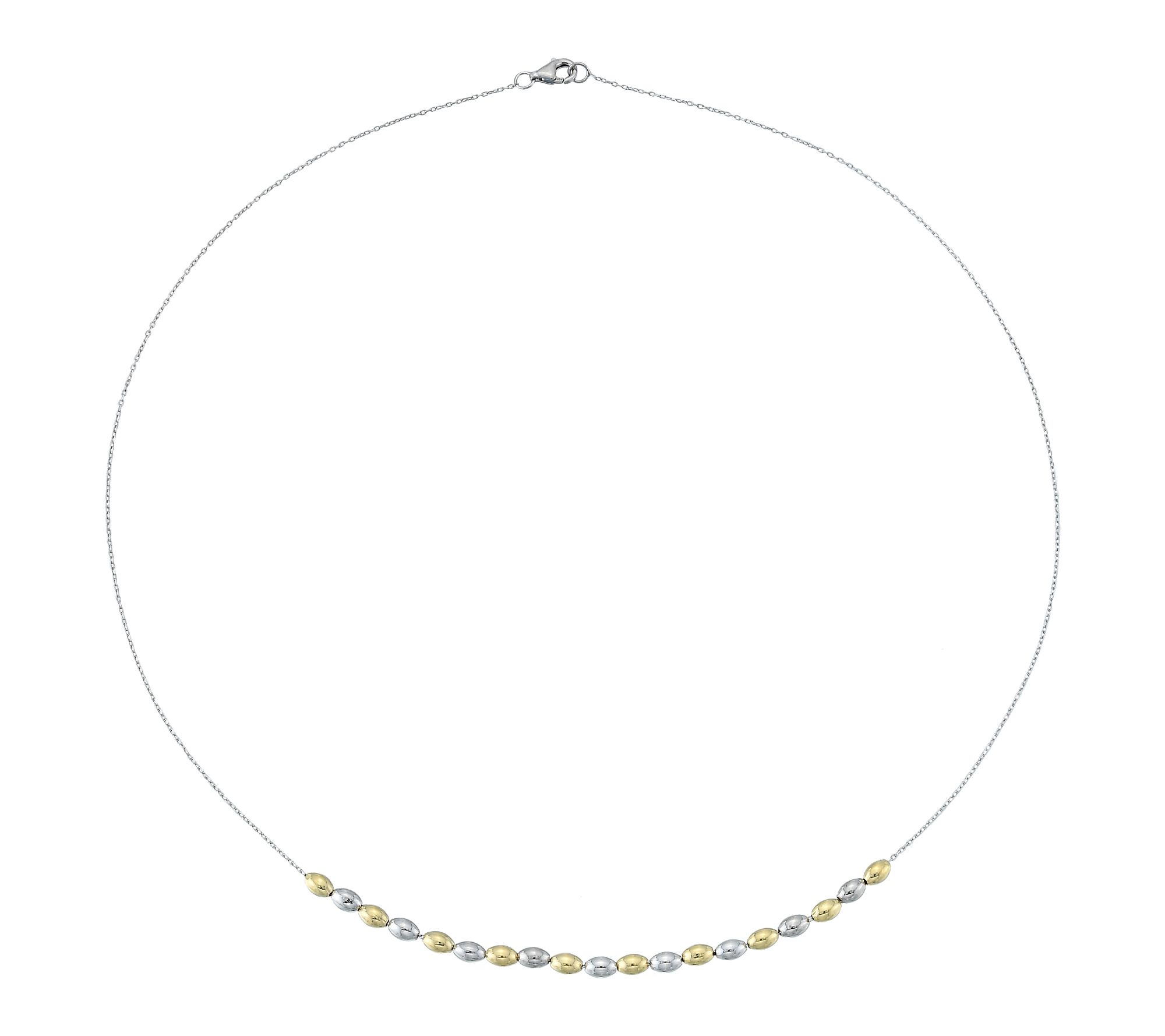 Every outing becomes a little more radiant with a two-tone oval bead necklace that dances effortlessly between silver and golden hues. Thanks to a station-style design, this piece easily transitions from polished weekday looks to weekend get-togethers, offering a refined accent you'll reach for again and again. From Silver Style®.
