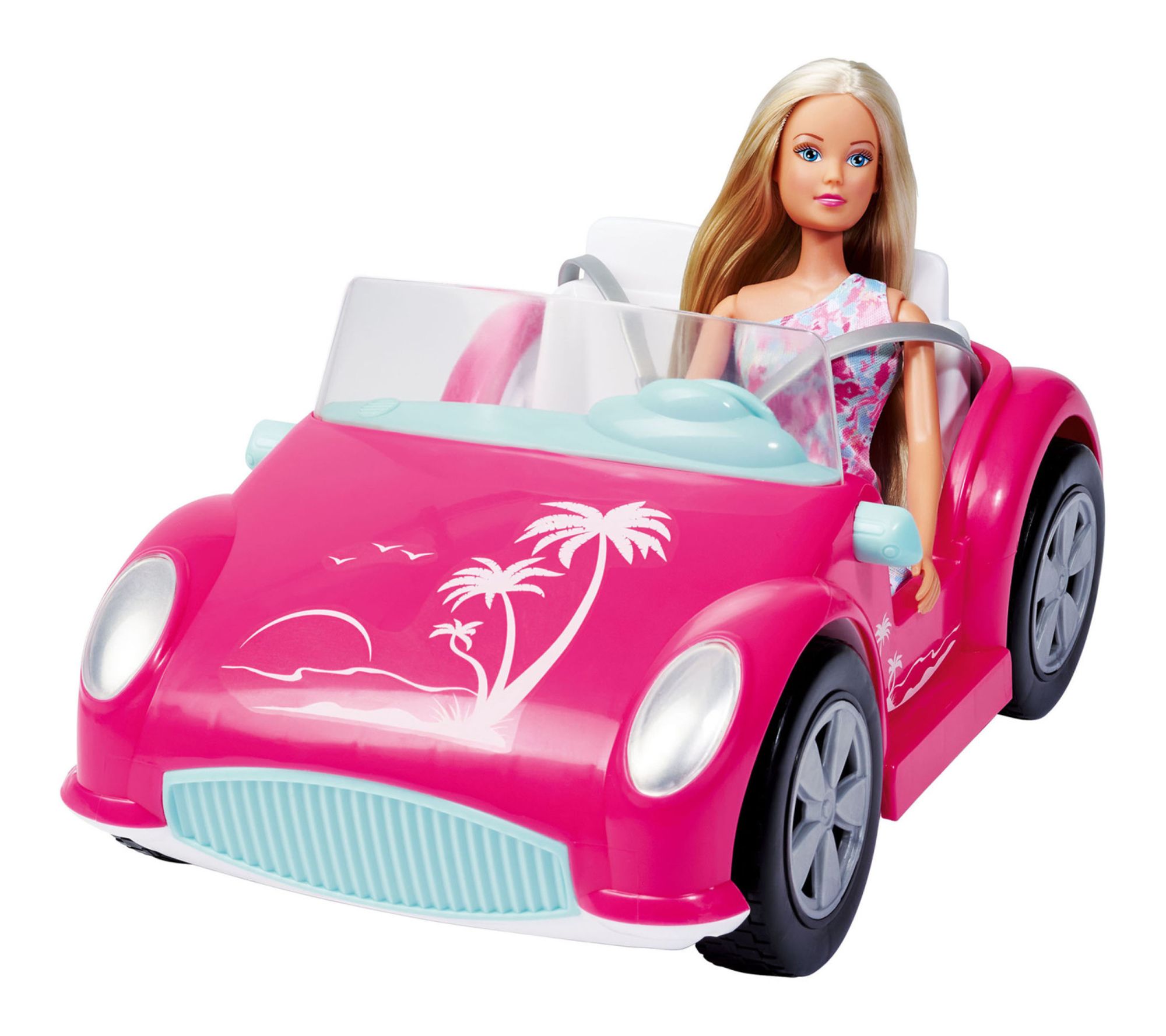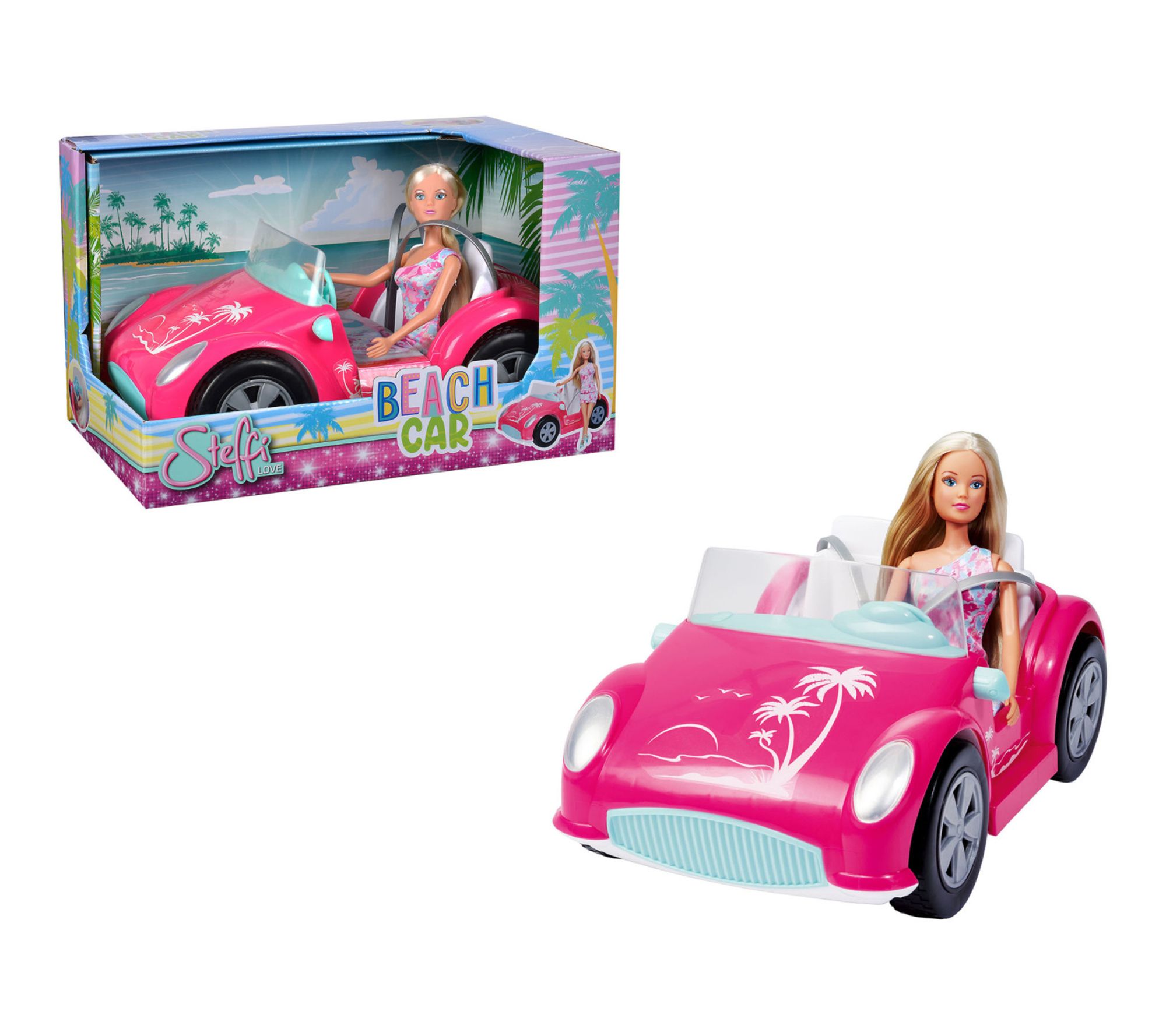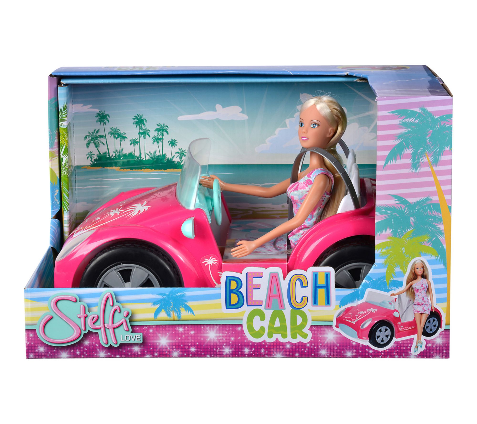 Sunshine-filled adventures await with this Steffi Love doll and her stylish beach car, featuring a breezy floral design and spacious two-seater for plenty of road trip fun. Fashion-forward Steffi is ready to cruise along the coast in her convertible, making every playtime a celebration of style and imagination. From Simba.