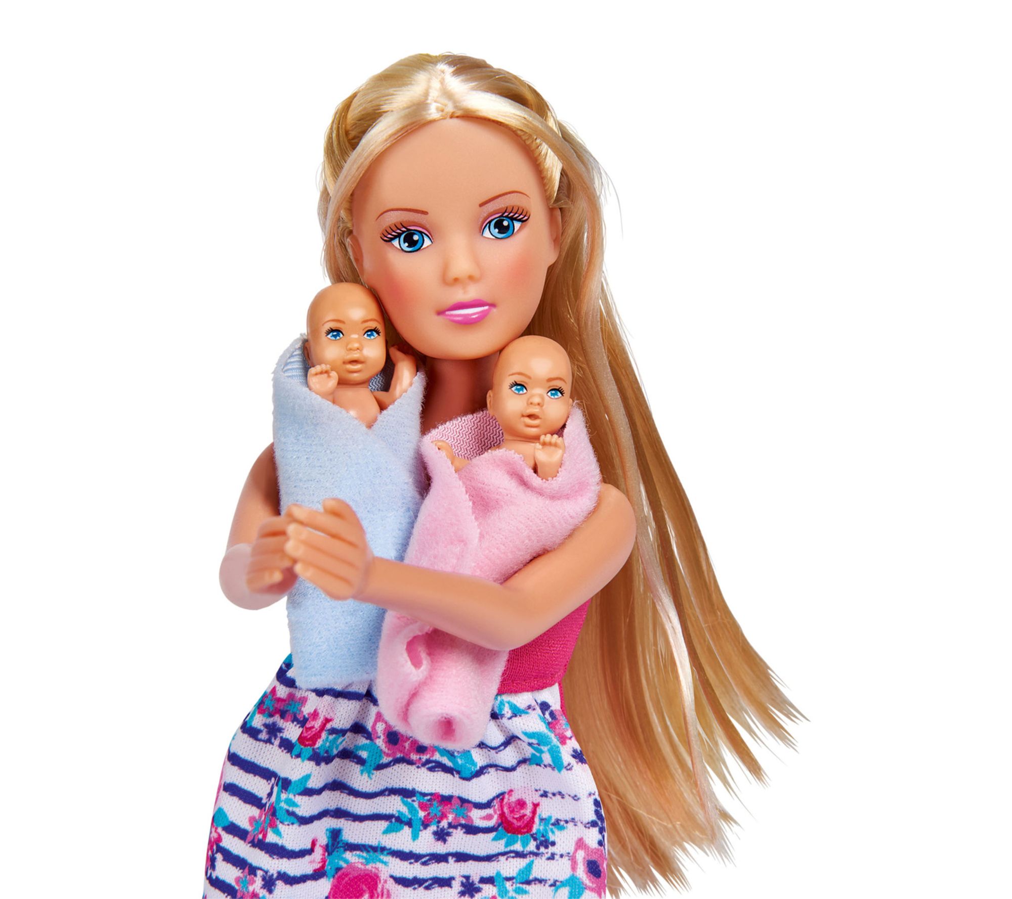 • Includes Steffi Love doll, two babies, bowl, bottle, spoon, fork, cup, wheel toy, block, rattle, pacifier, teether, keys, a ball, two blankets, bathtub, and changing table