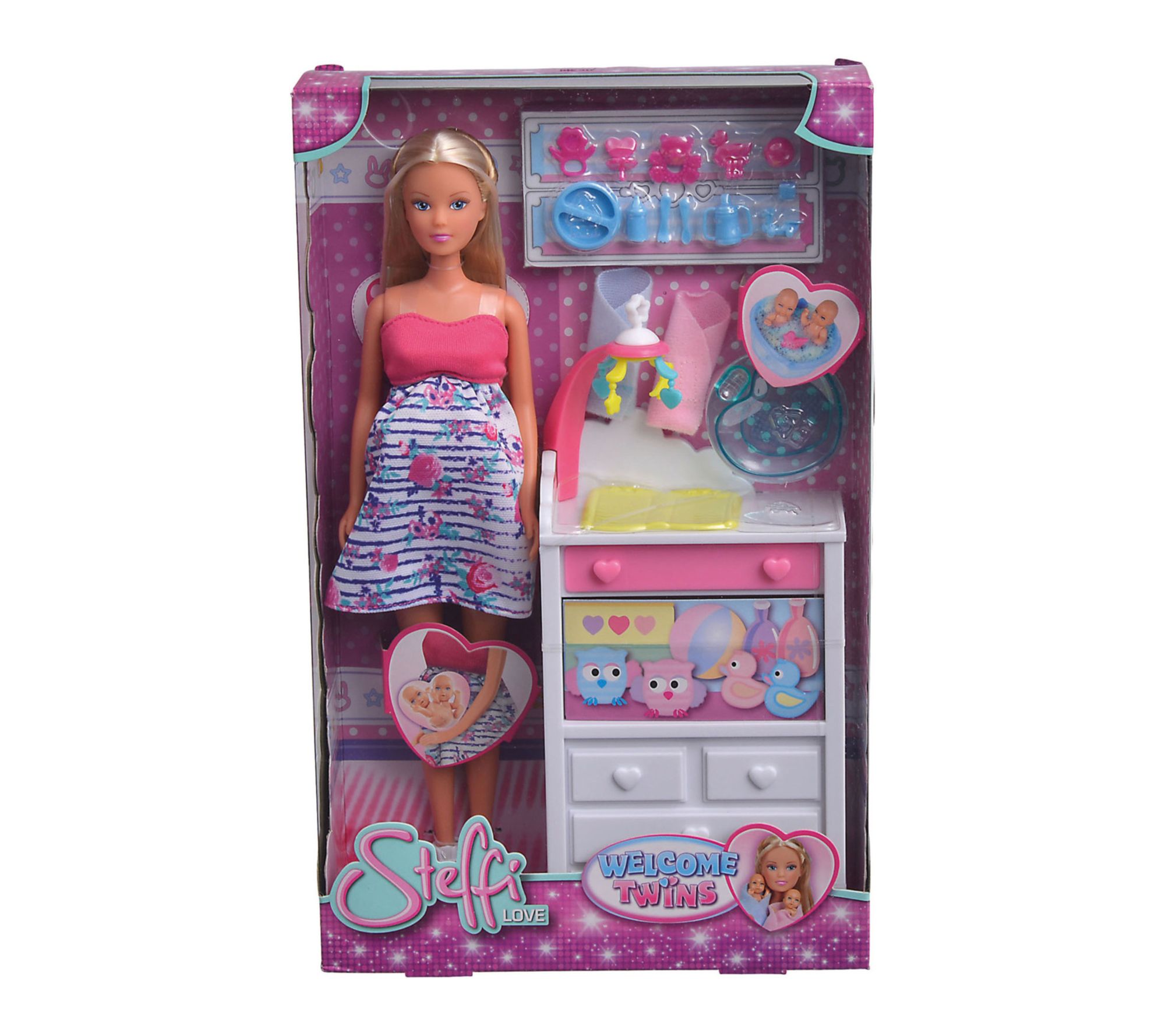 Create sweet family stories with this Steffi Love Welcome Twins dolls set -- a delightful choice for imaginative play. With Steffi caring for her newborn twins and a collection of accessories to help with bath time, feeding, and play, every day brings new adventures. From Simba.
