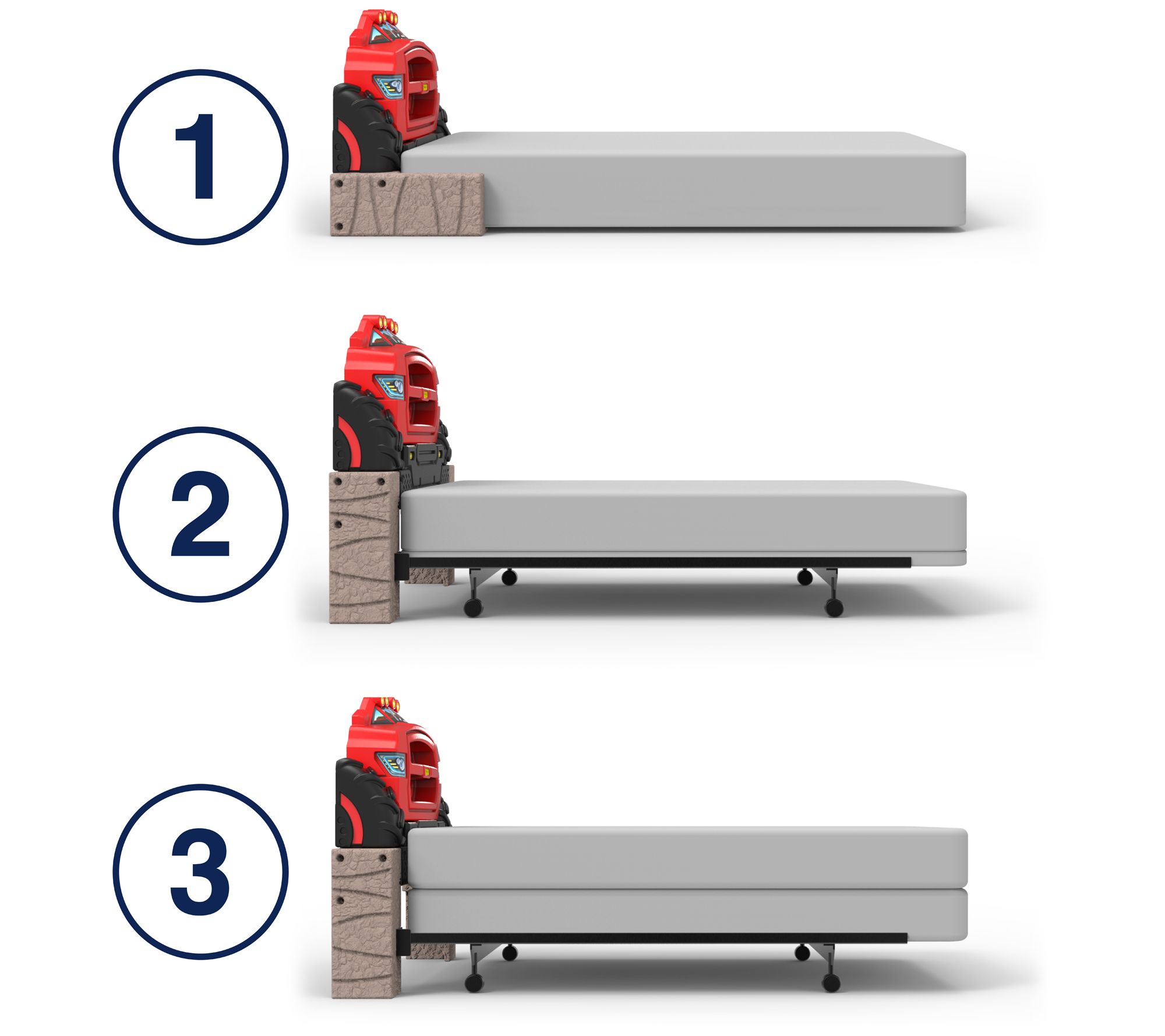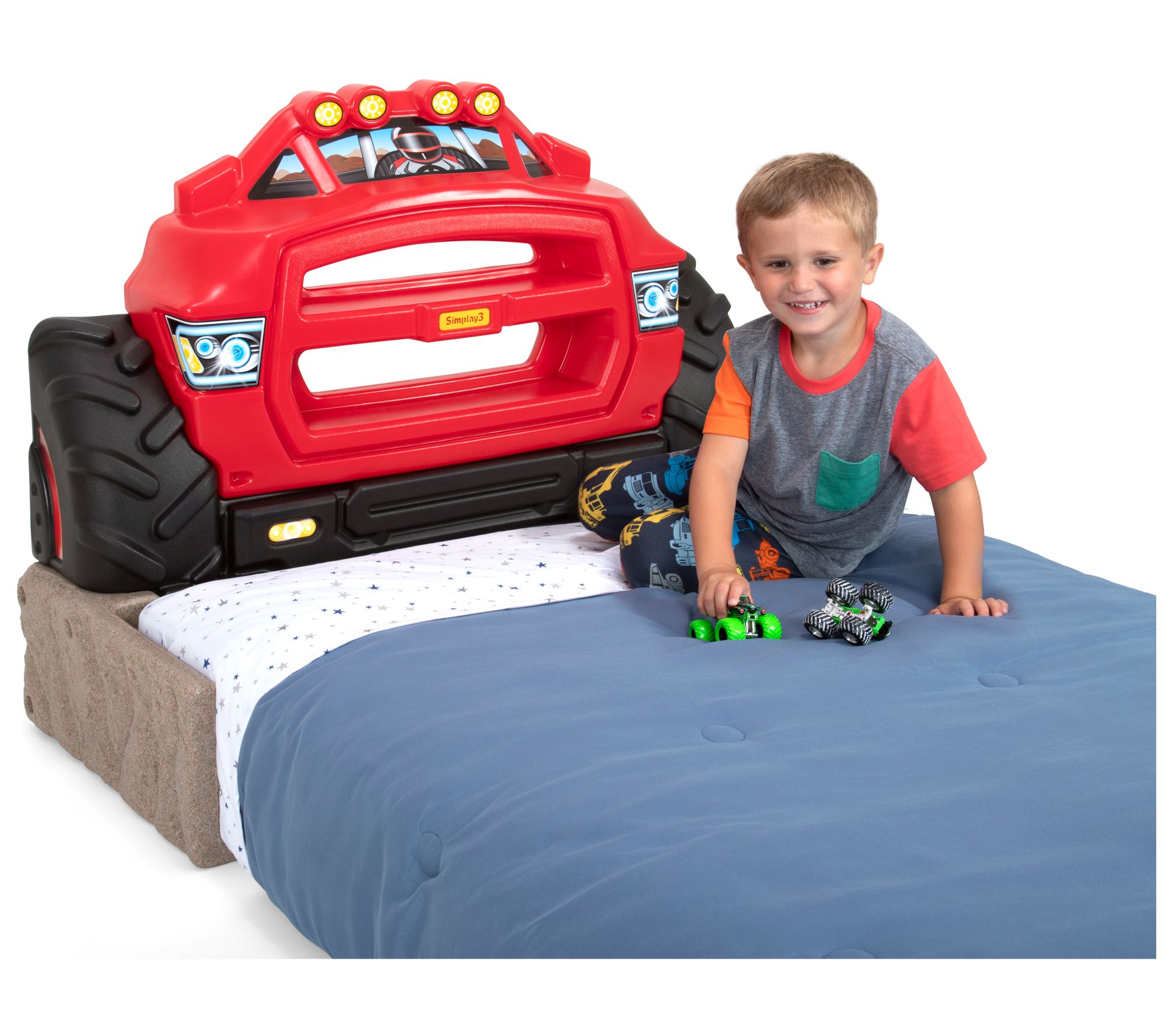 Your little one may actually want to go to sleep when their bed is finished with this fun monster truck headboard. From Simplay3.