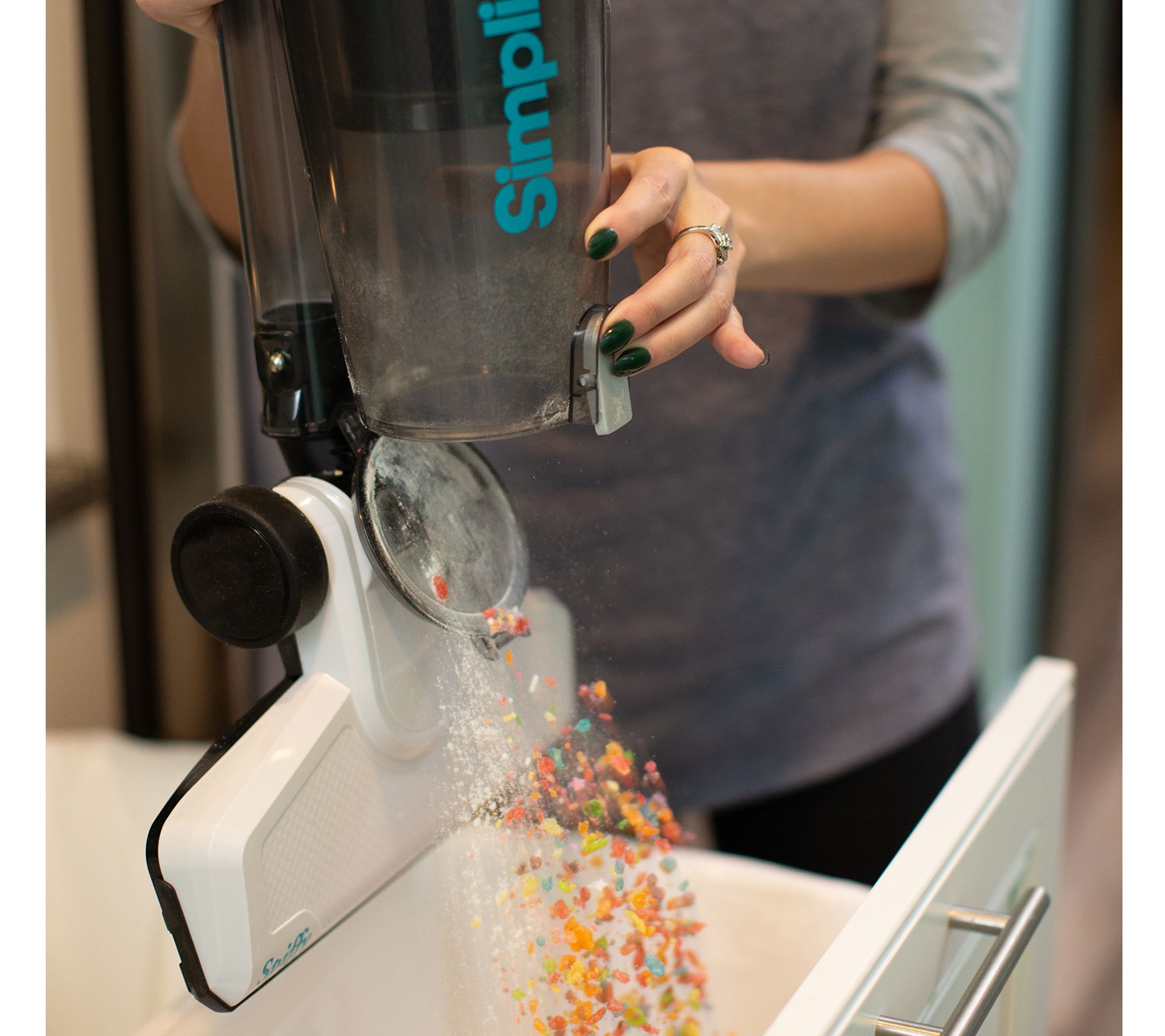Spiffy picks up crumbs, dirt, and dust from bare floors in a jiffy. Simple but powerful and weighing just seven pounds, this vacuum's easy to lift, easy to clean, and easy to empty for the next use. From Simplicity Vacuums.