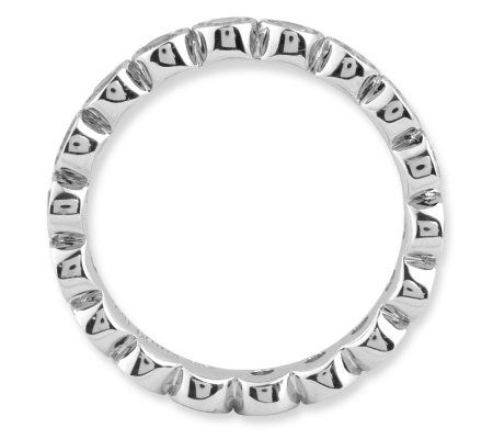 Pile this beauty on with other rings from the Simply Stacks collection for stackable style that lasts. Your finger will be surrounded by rich garnets, all neatly bezel-set in highly polished sterling silver. A chic way to honor your own birthstone. Or layer with other gemstone eternity bands for a one-of-a-kind family design. From Simply Stacks(TM) Jewelry.