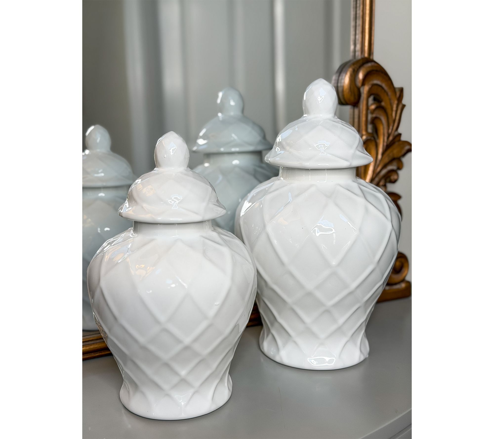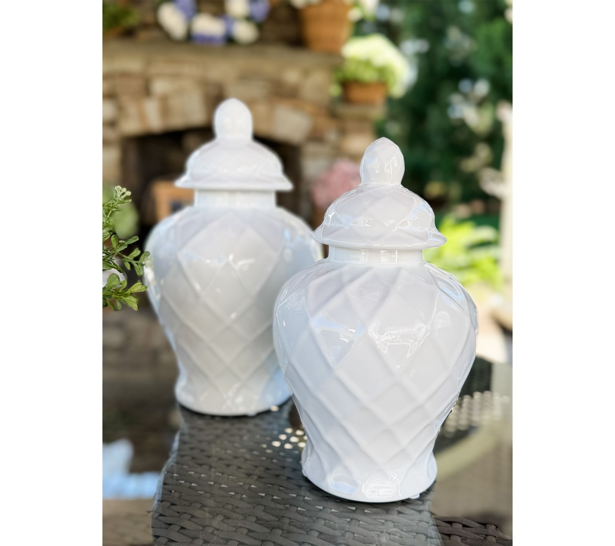 An elegant accent for your entryway, mantel, or dining space, this ceramic ginger jar offers instant sophistication with its raised lattice pattern and soft white glossy finish. Display it on its own, or lift the removable lid and fill with your favorite faux botanicals for a fresh look season after season. From The Simply Stunning Collection.