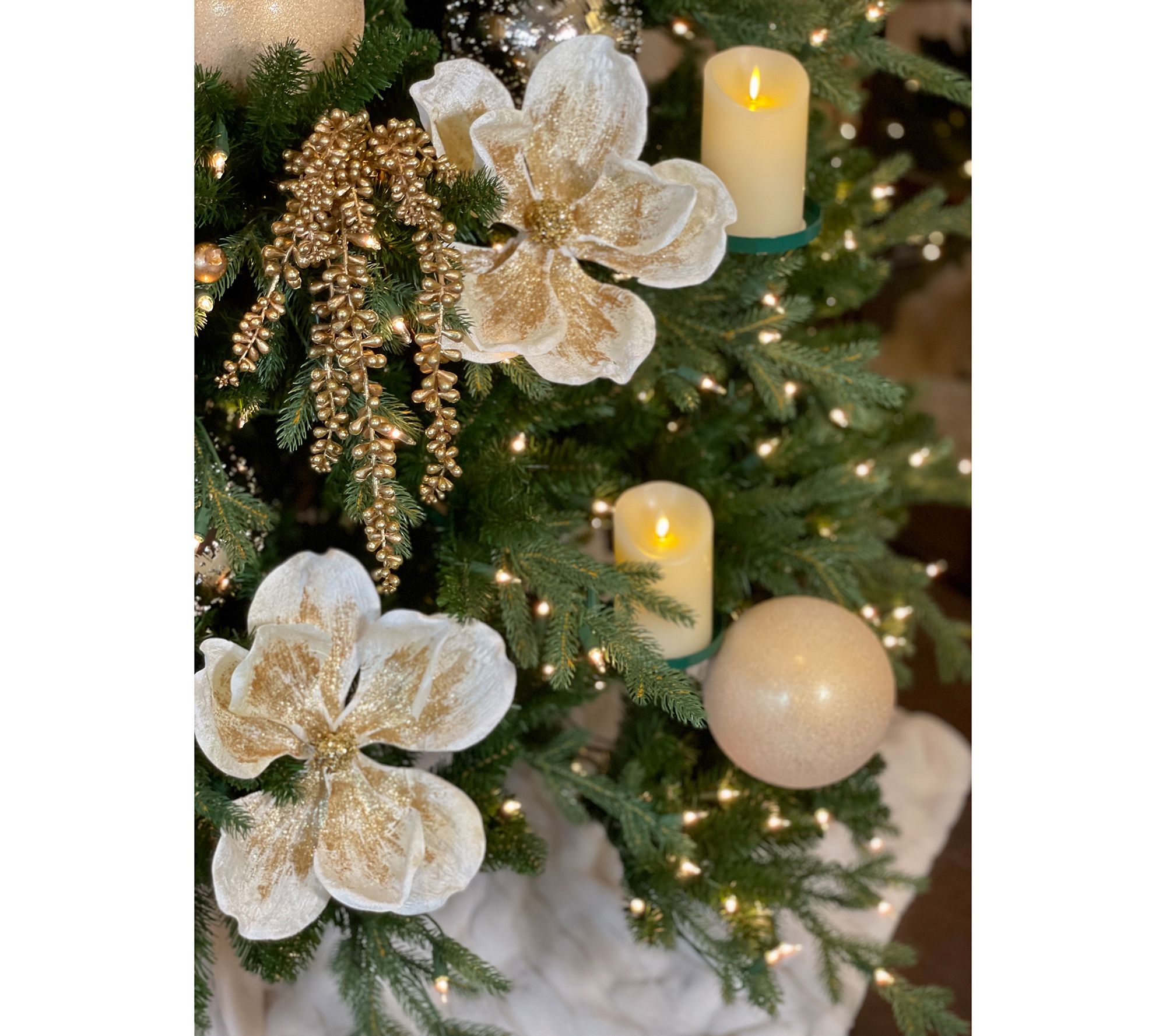Evergreen and ever elegant, this lush professionally layered tree elevates your traditional holiday decor with its rich green color, realistic full foliage, and a dazzling array of incandescent lights delicately placed throughout the design. From Simply Stunning by Janine Graff.